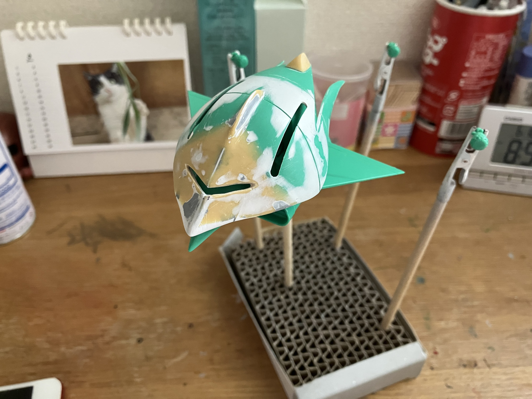 クチバシ部分の改造は、元キットの部分を切り落としてプラ板でフレームを作り、その上にエポパテを盛り付けて整形しました。表面処理はエポパテで。