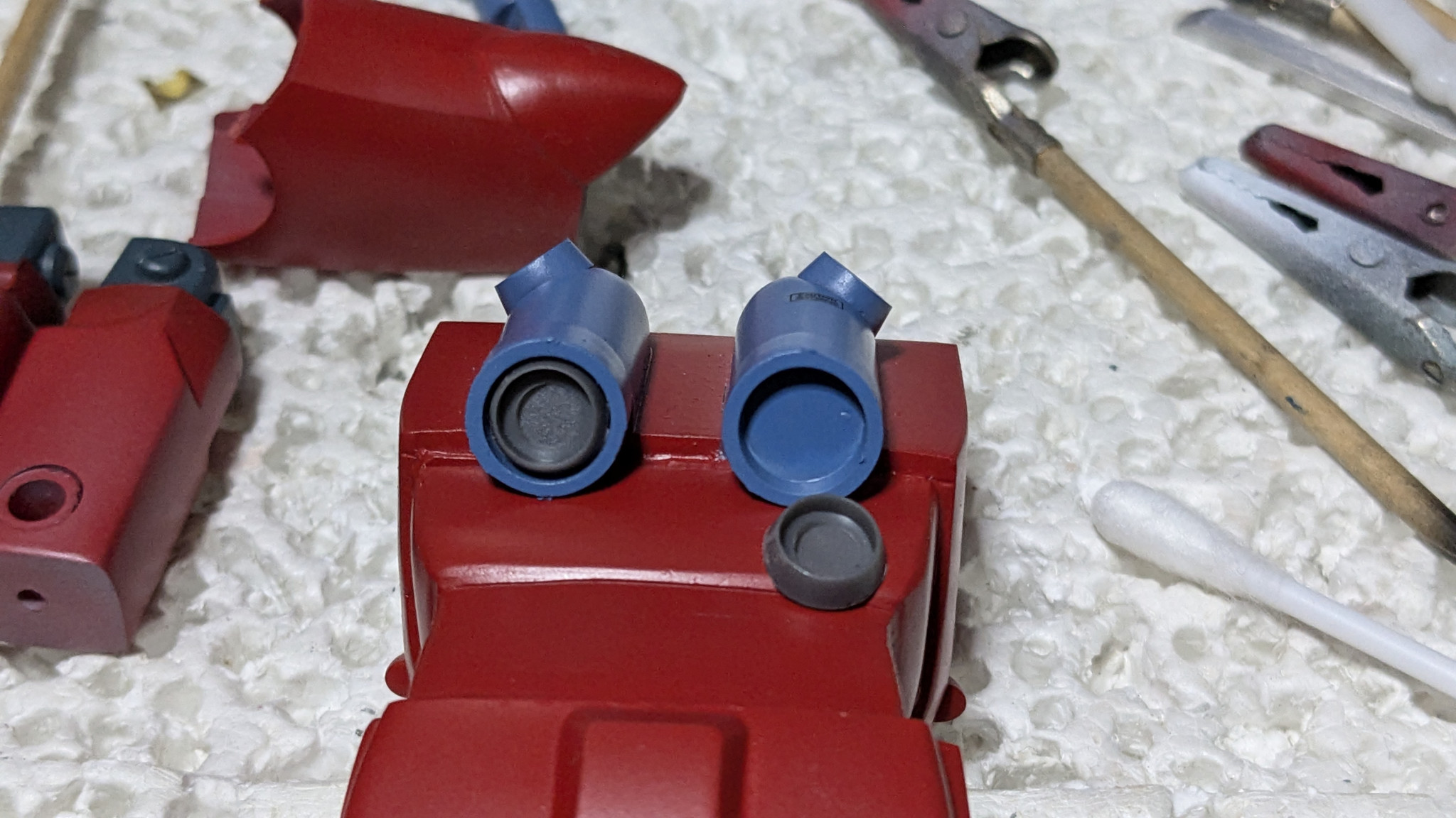 肩の関節の軸の根元を削って胴体に密着する様にしました。