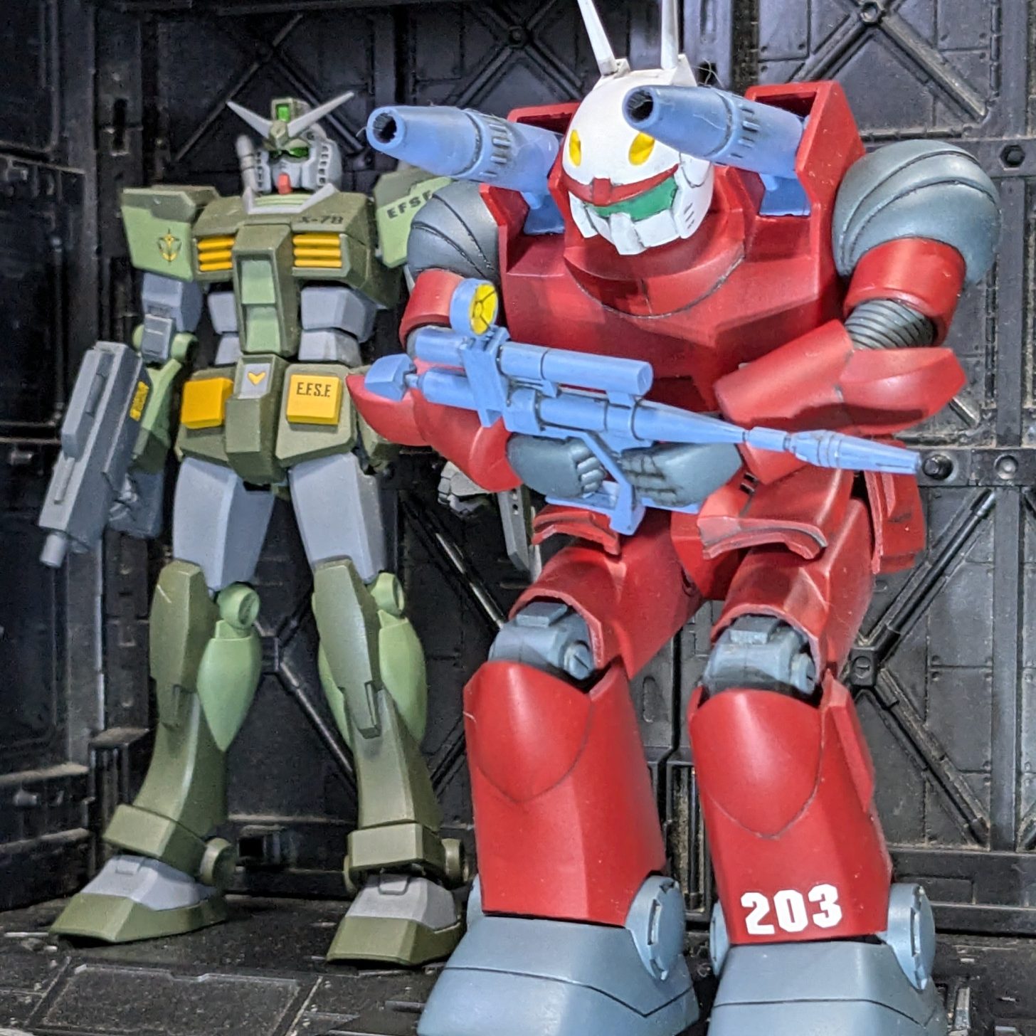 連れのお陰で運良く手に入った旧キットのガンキャノンをポーズ固定で作りました。