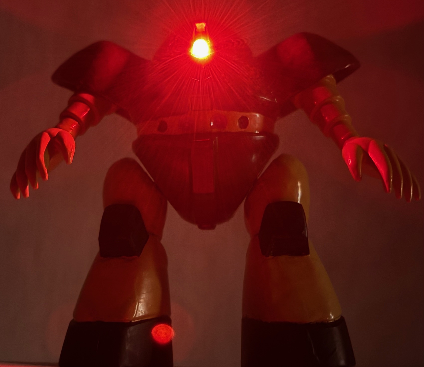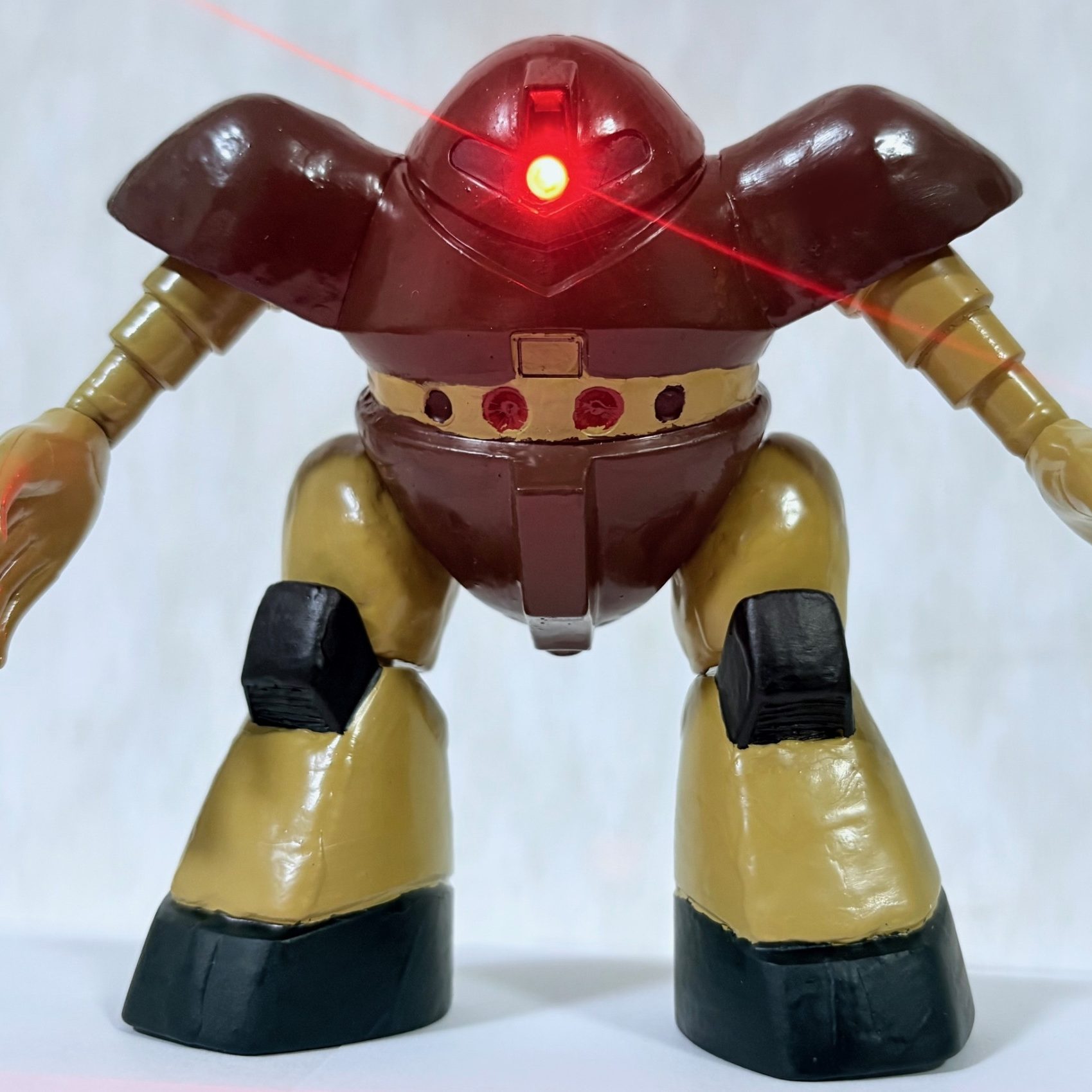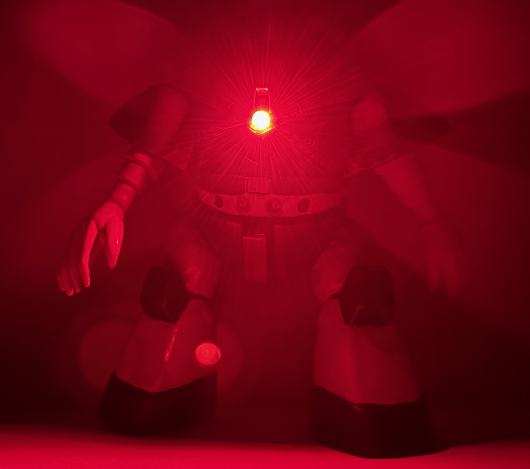 「あるギミック」とはズバリ「モノアイの発光」である。なぜモノアイを光らせようと思ったのかというと、ゲームセンターで見かけたSEED FREEDOMのプライズ「ズゴックのルームライト」に感化されたからである。