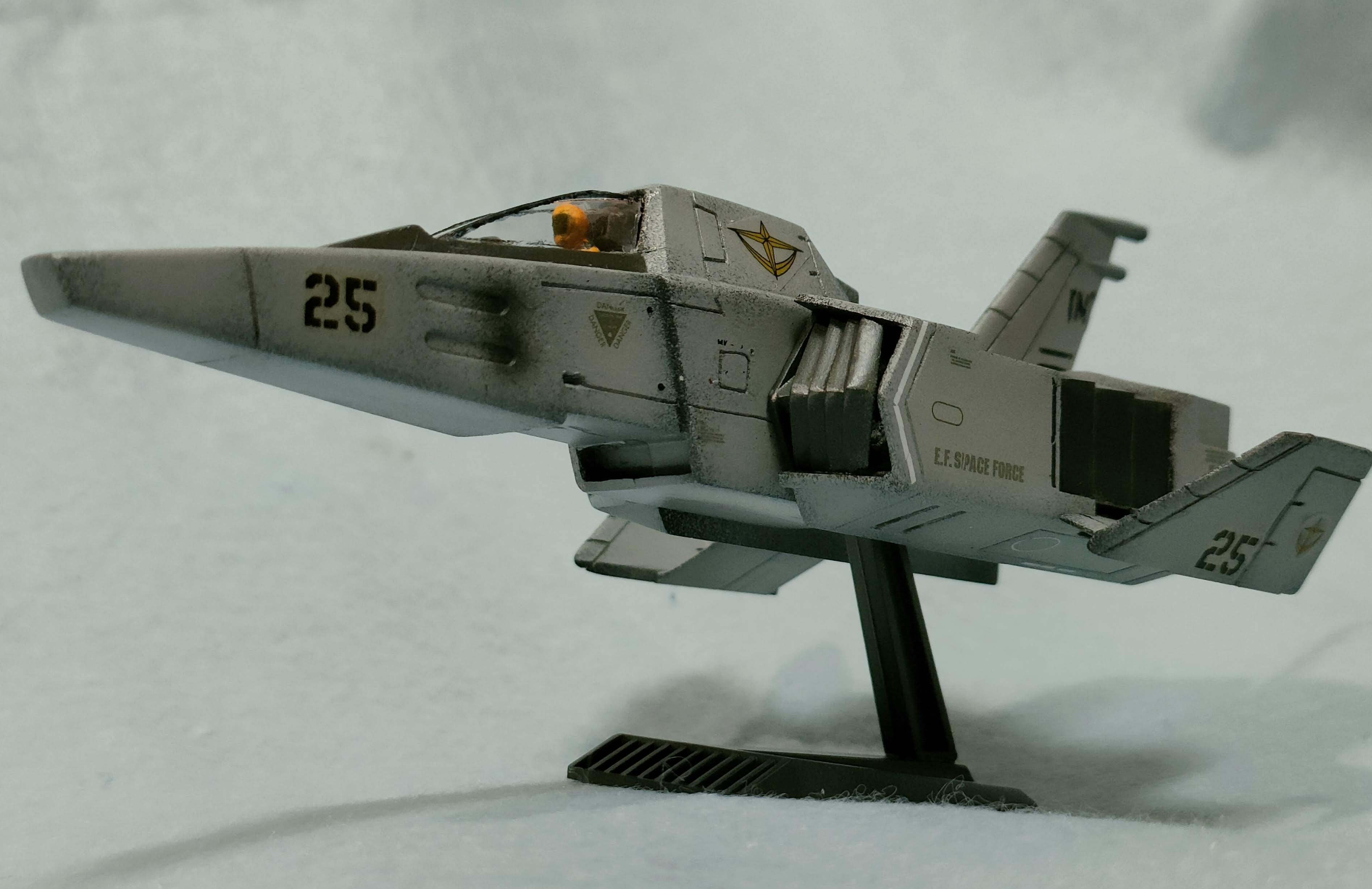 コックピットを作り込まれたとことで、リアル感が出て、カラーリングの良さも合わさって、戦闘機のカッコ良さが充分伝わります👍