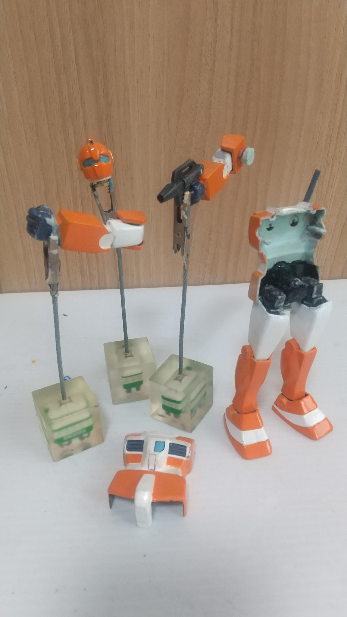 ついでに後ろの戦隊ロボには腕の付け根と下半身パーツが入ってます。