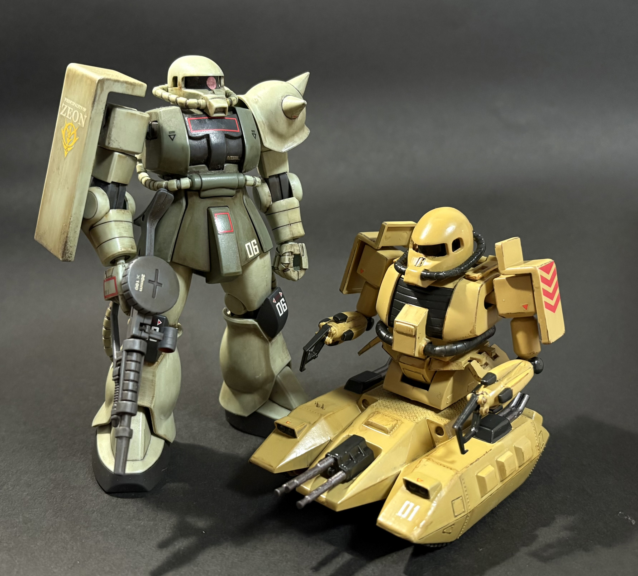 秋葉原のイエサブのガンプラコンに向けて、旧キットのザクタンクを製作しました。ほぼストレート組みに塗装と、気持ち程度のウェザリングを施してみました。