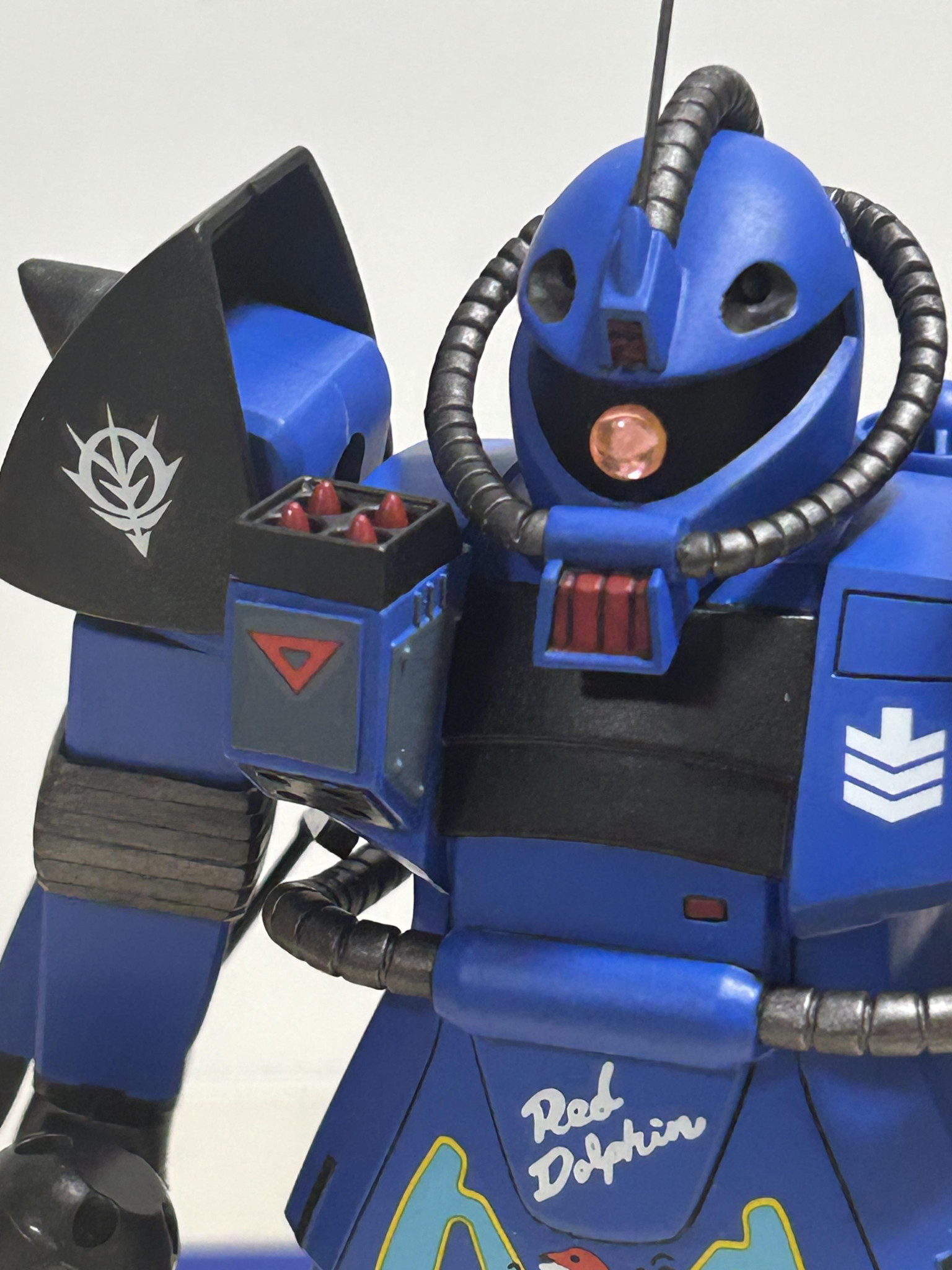 胸部のミサイルを赤く塗装したのが良いアクセントになりました。レッドドルフィン隊のデカールも上手く貼れました。