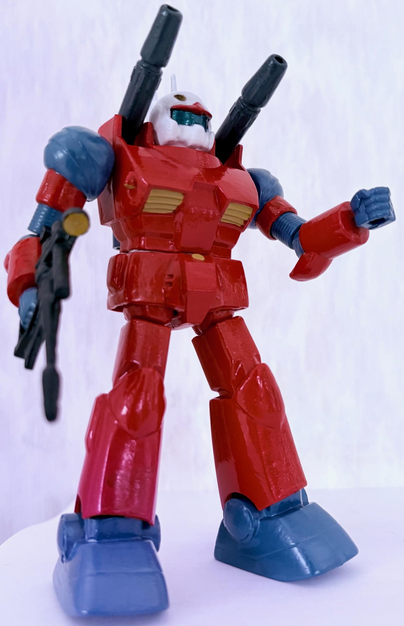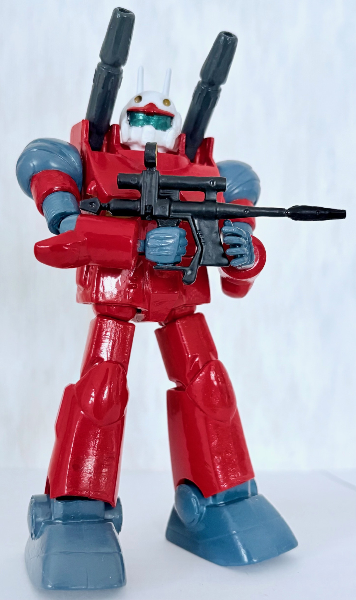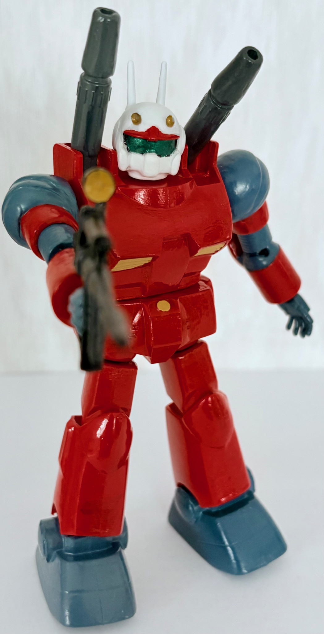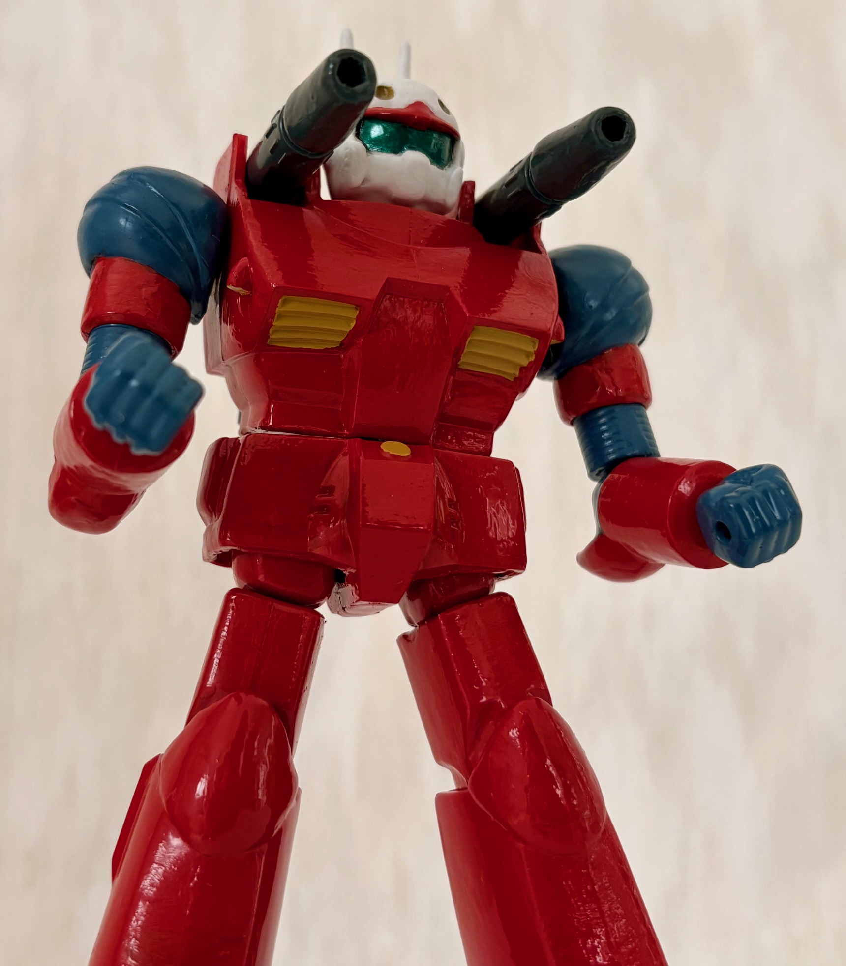 塗装で一番大変だと思ったのが、頭部を何度も白系塗料で塗りまくった事かな・・・。他はほぼ赤とミディアムブルーだったので、それほど苦労しなかった。