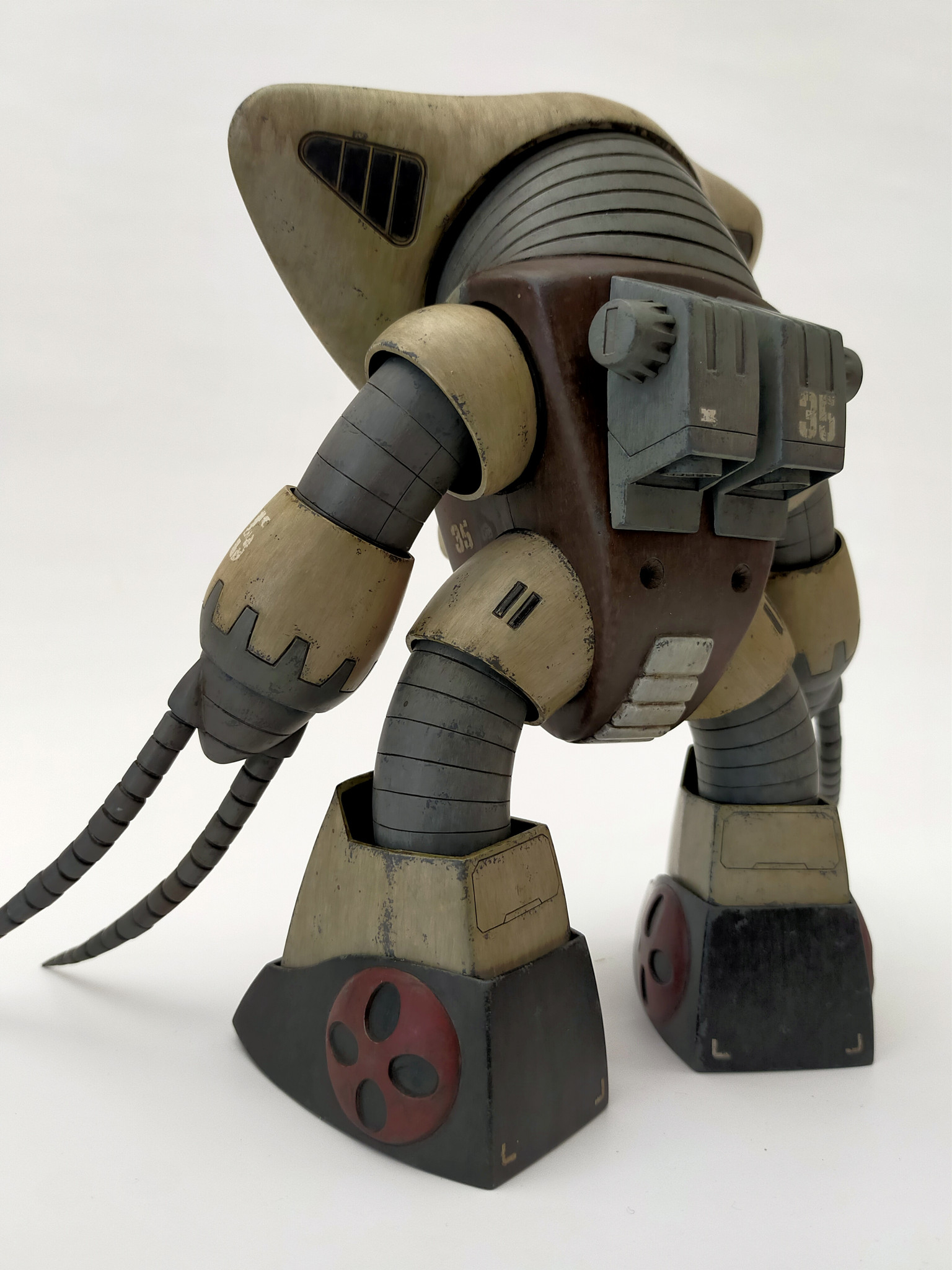 旧キットの1/100アッグガイです。 数年前に作り始めたのですが、改造に行き詰まってしまい作成を放棄したままになっていました。 関節をアルミ線で接続するなどして完成にこぎ着けました。