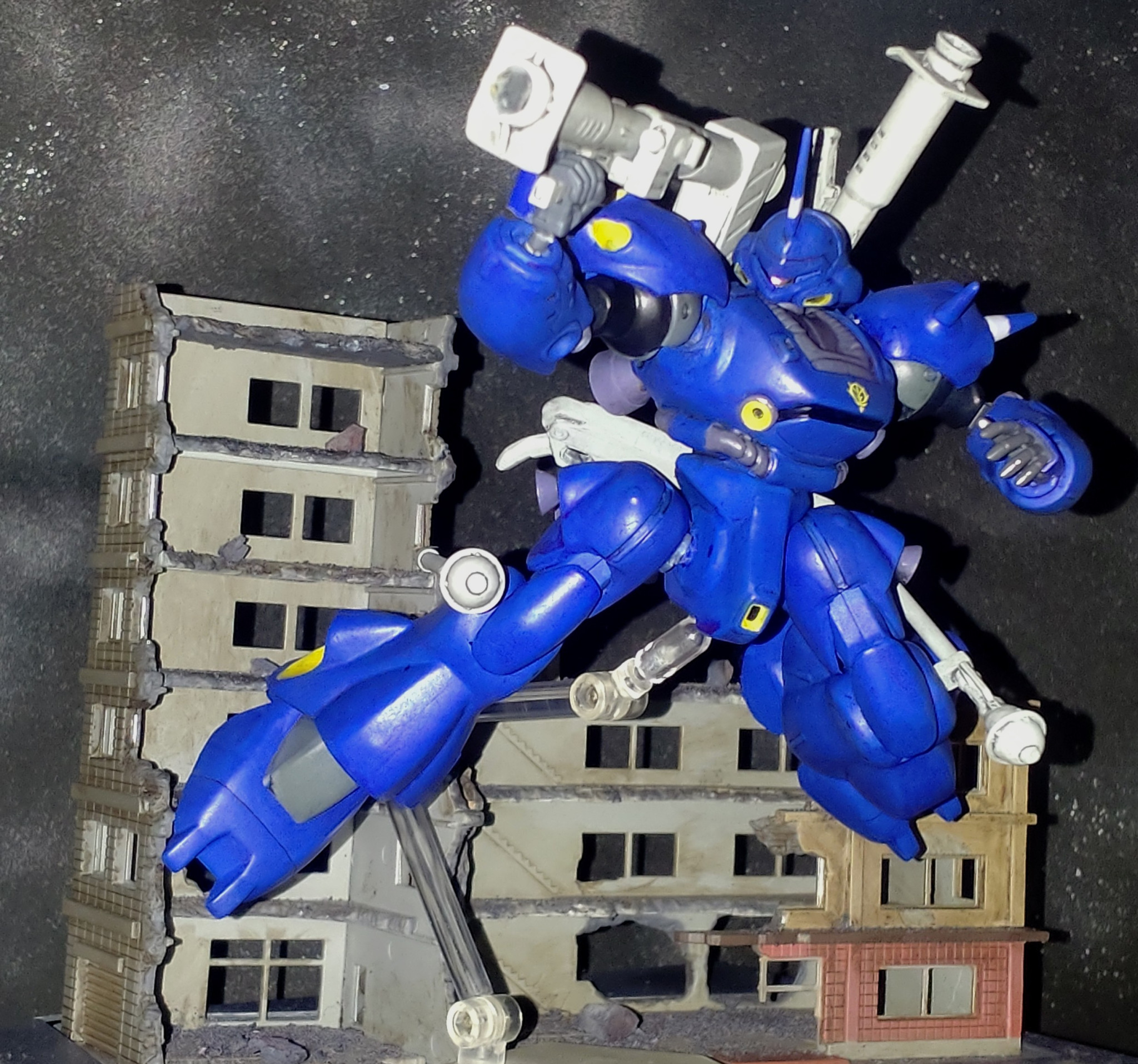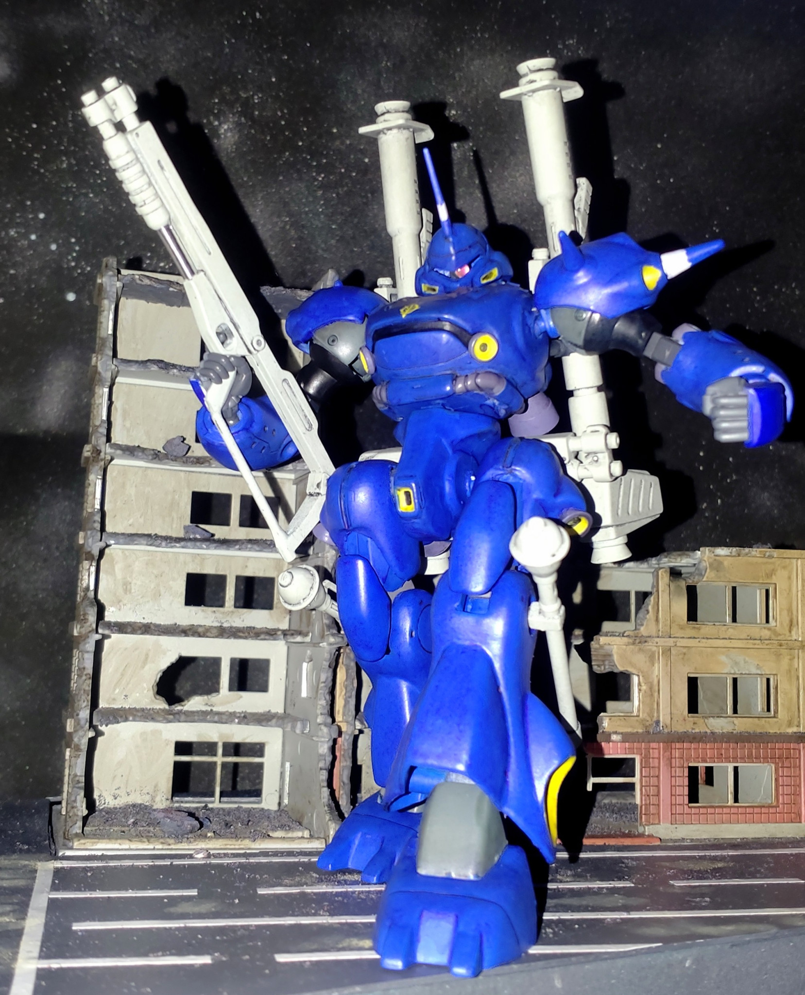 全身を改修したことで何とか完成した旧キット版ケンプファーですが、これを完成させた以上HGUC版を買うことはないでしょう。HGUC版もカッコイイのですが、OVA展開当時にリリースされたこのキットも可動等を除けば充分カッコイイです。