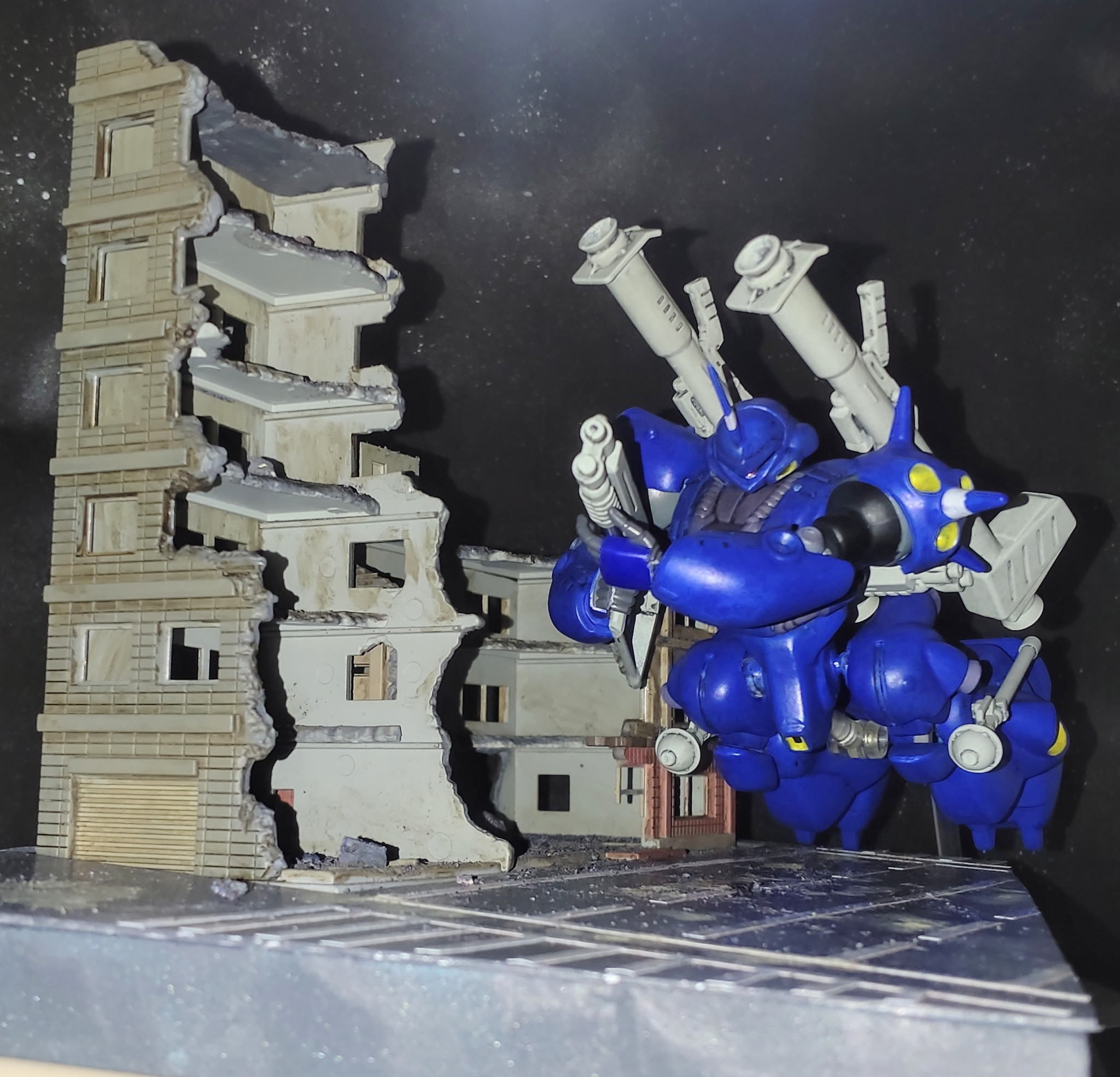 今回からトミーテック製のジオコレシリーズから製作したガンプラ用ベースも用意しました。