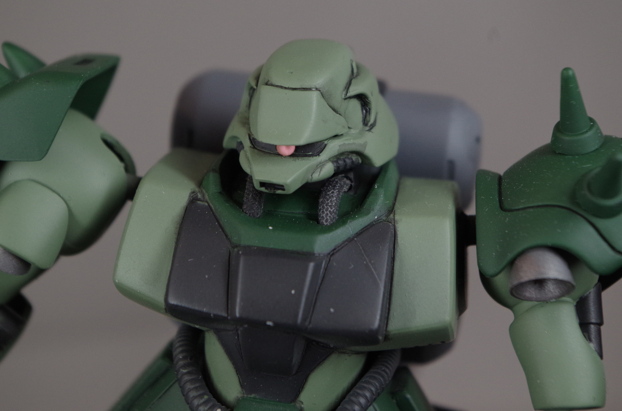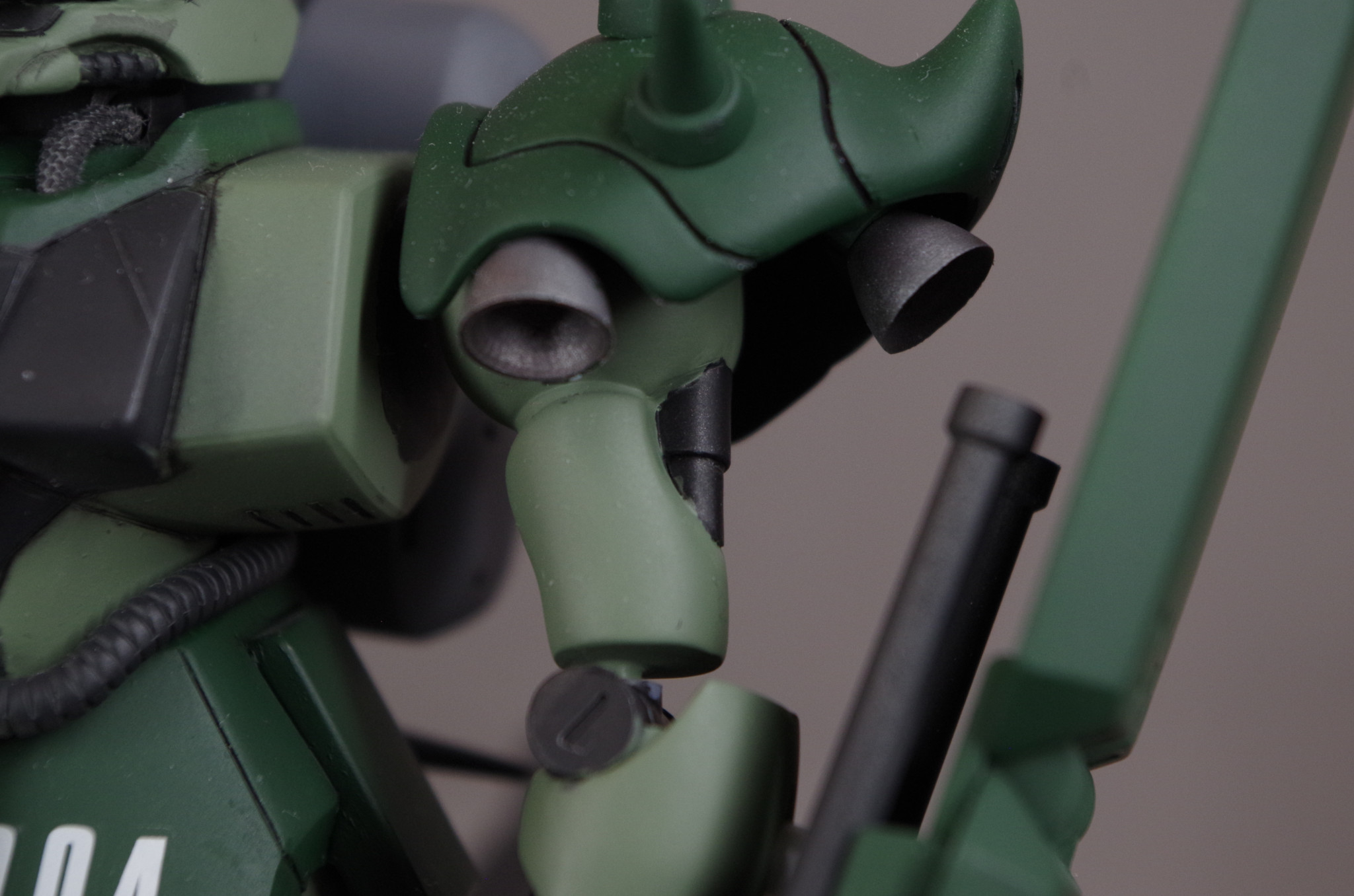 首元のパイプは中途半端なモールドだったのでガラスチューブに置き換え。モノアイは削り飛ばして市販品に置き換えです。