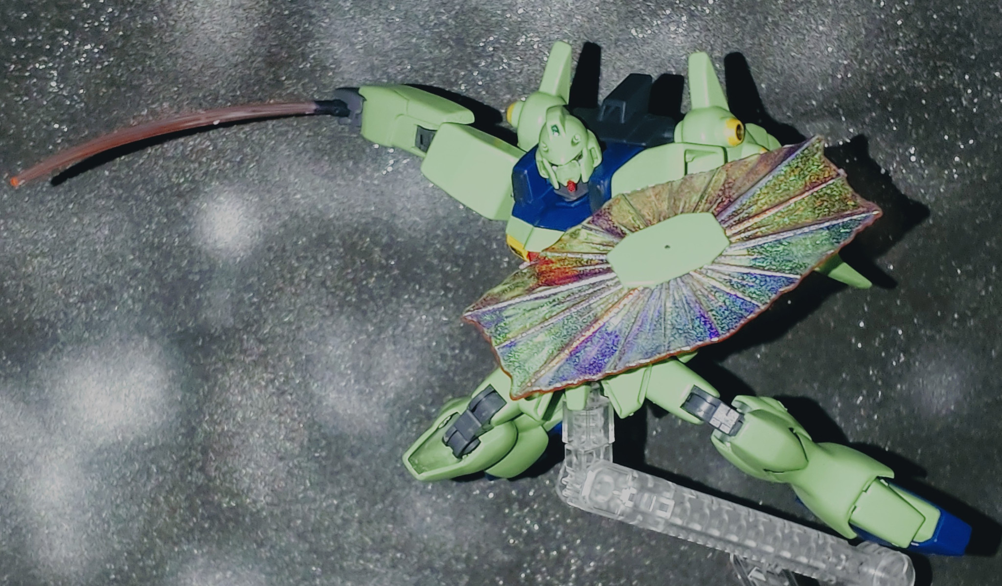 ビームシールドはガンダムマーカーホロマーカーを吹き付けて粒子感を出しました。