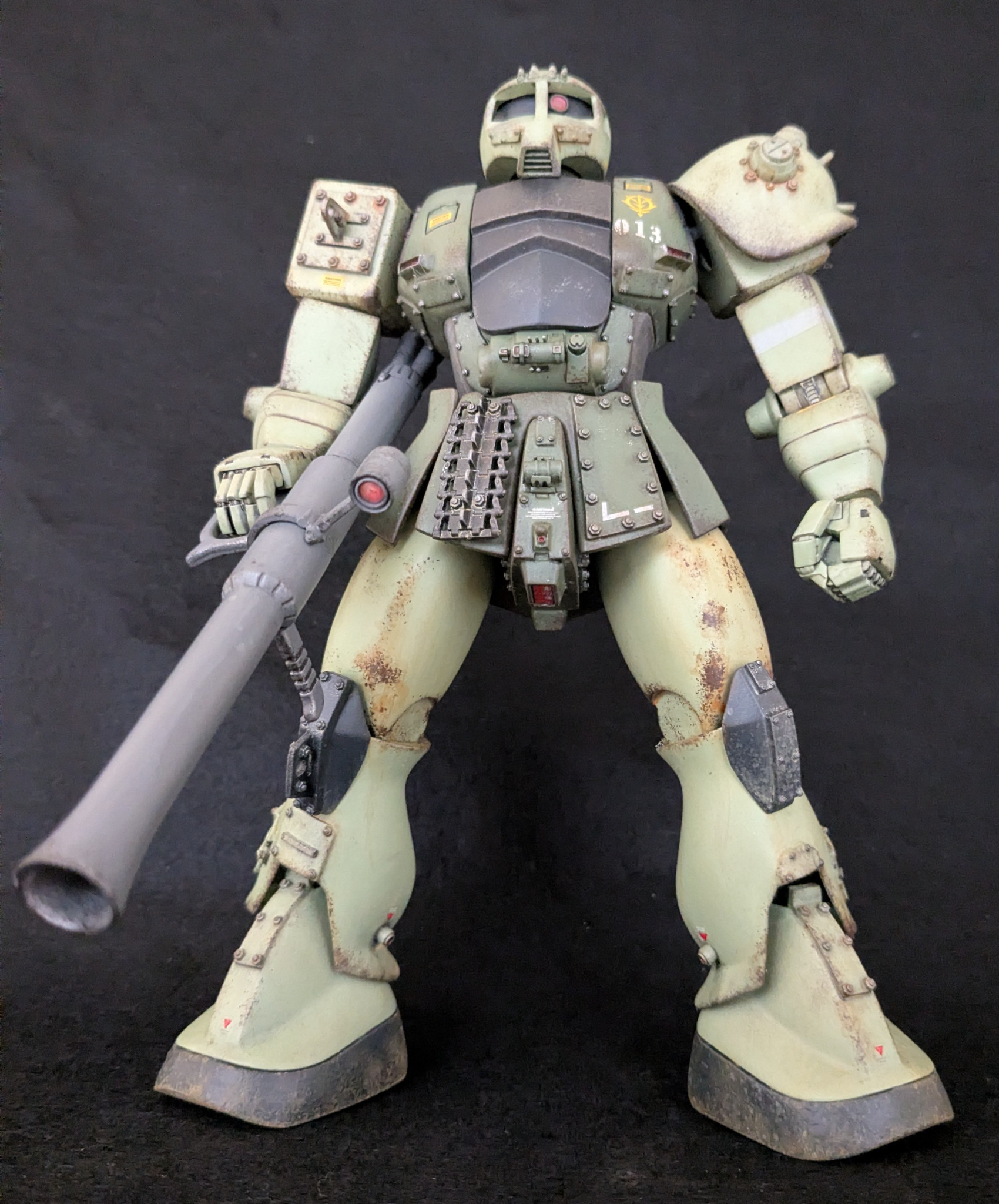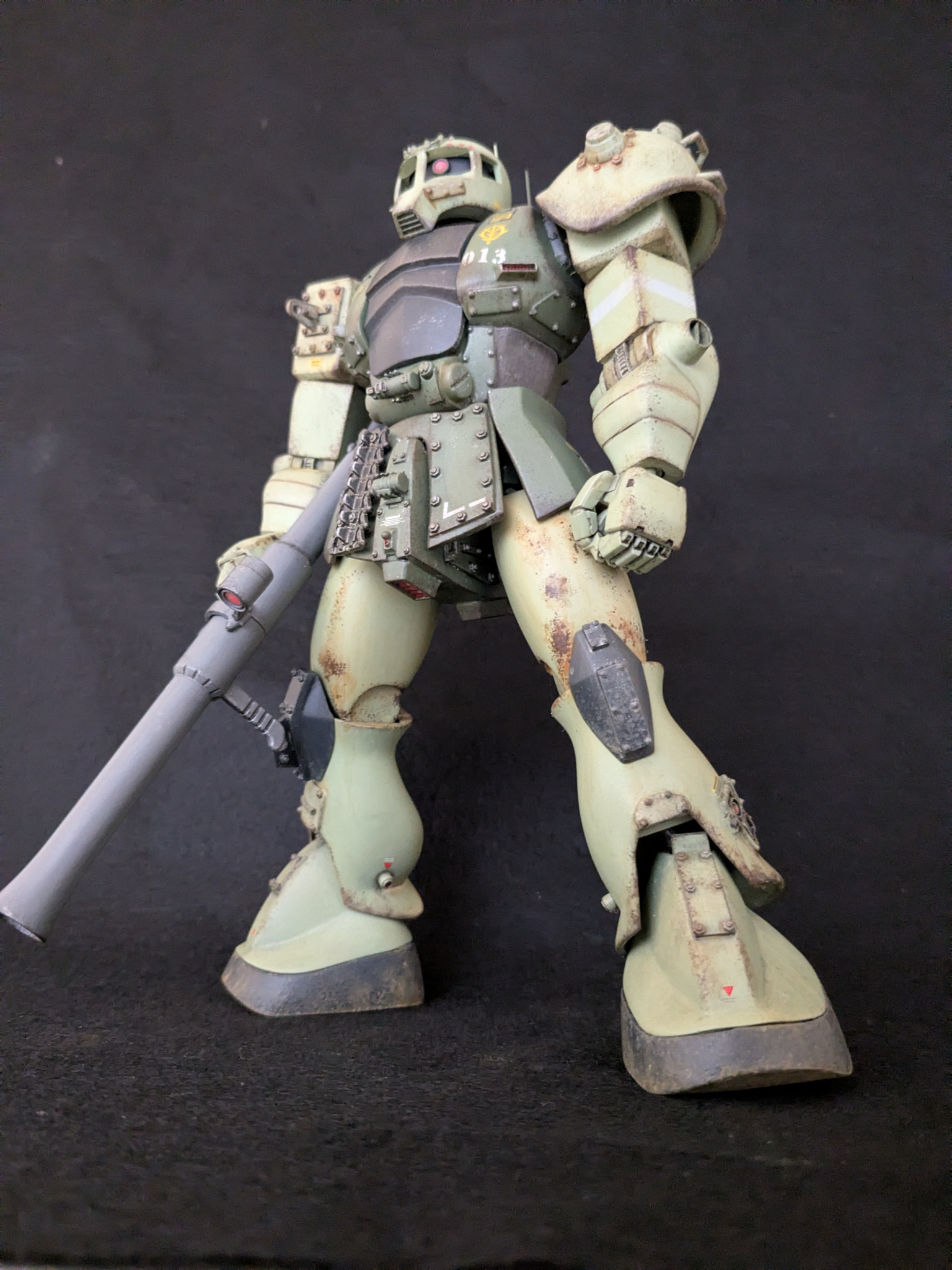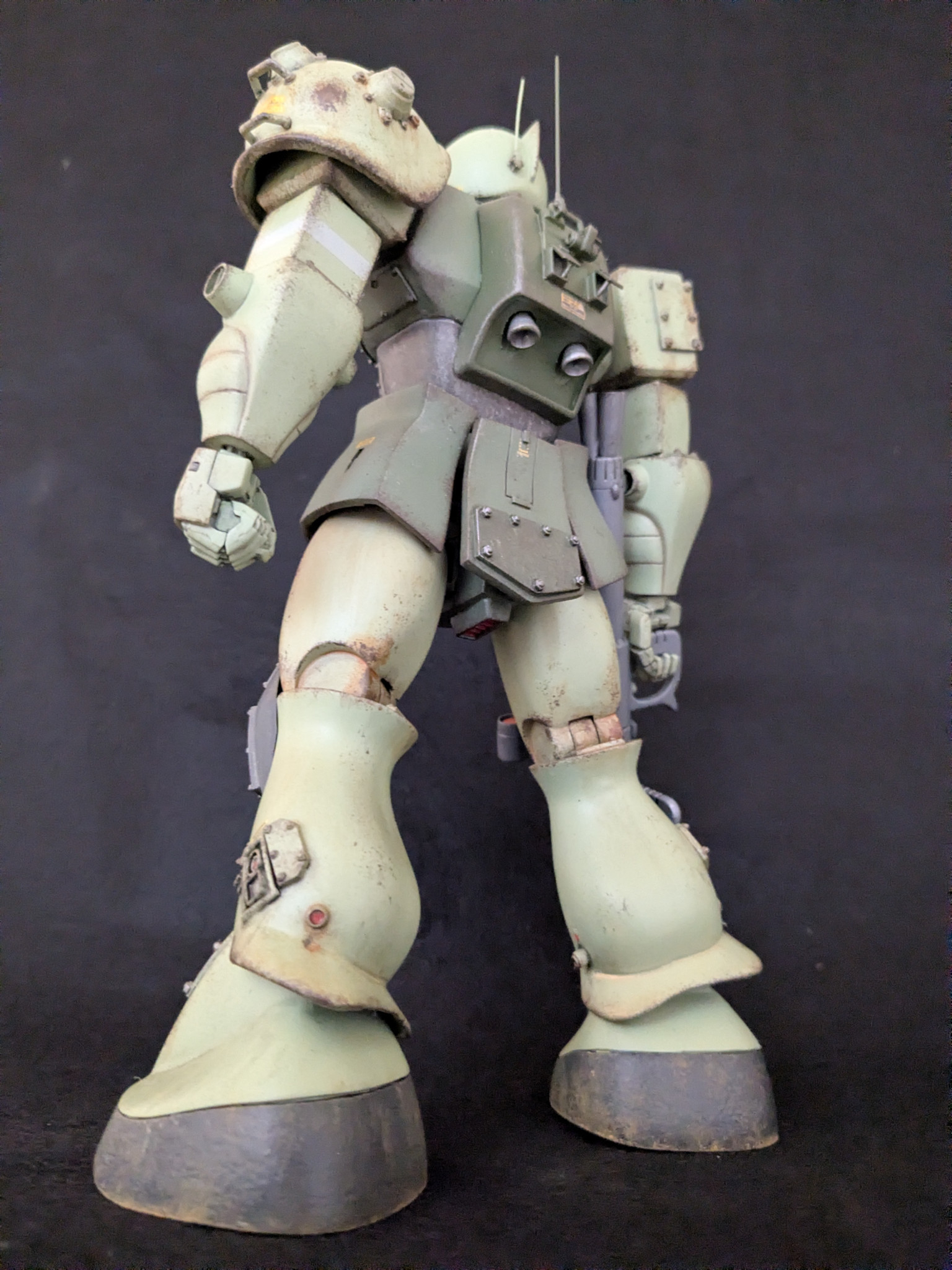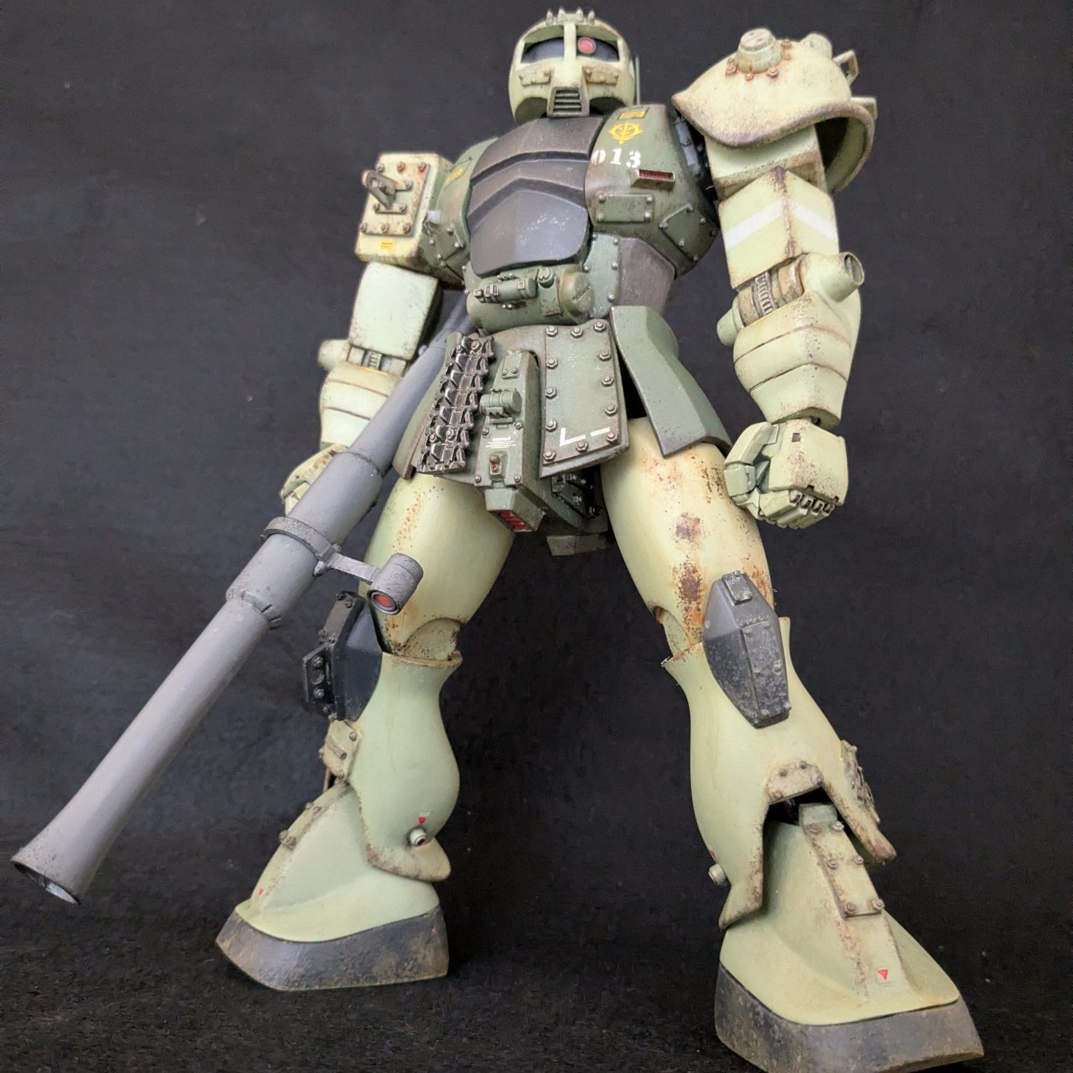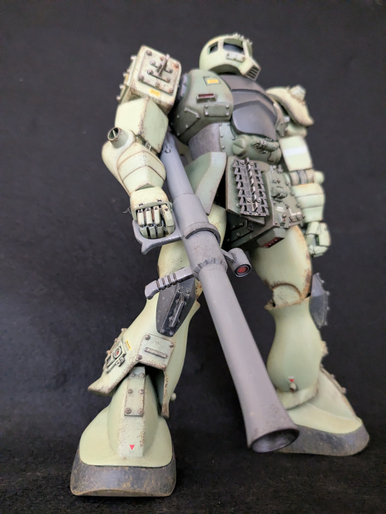 脚部の接続、吊り下げとは目から鱗です!勉強になりました。ザク好きにはたまらない作品ですね。HGやMGの改造より難易度が高いと思いますが、すごい完成度!!眼福です。