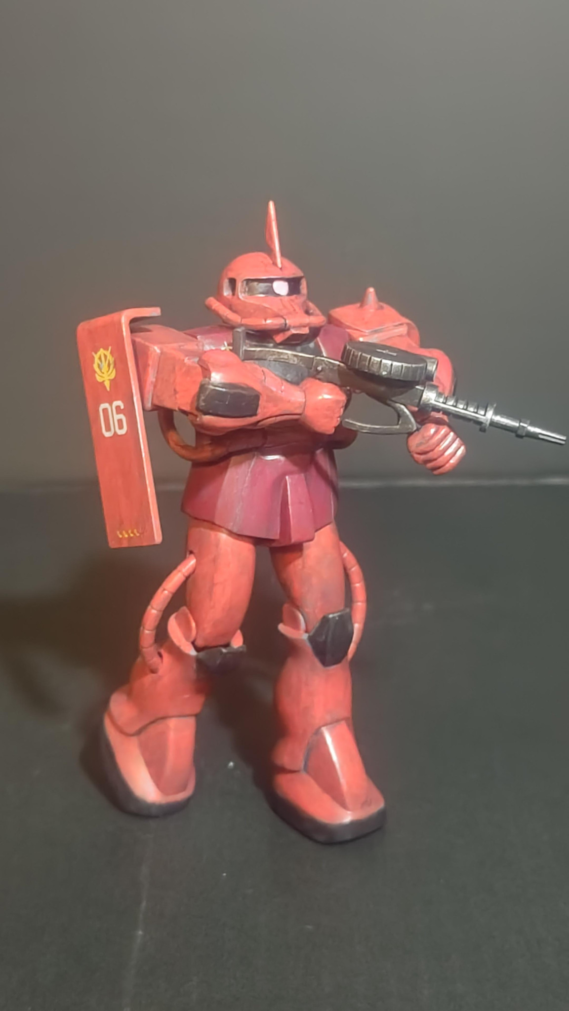 ベストメカコレクションNo.6 1/144 シャア専用ザクを第一次ガンプラブーム当時を思い出しながら水性筆塗り塗装で完成させました。