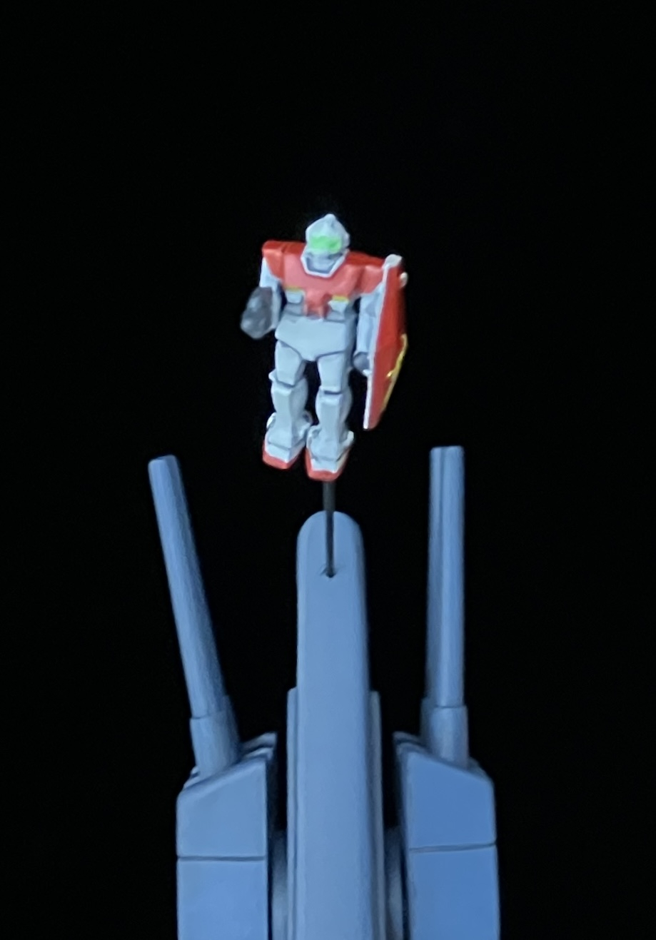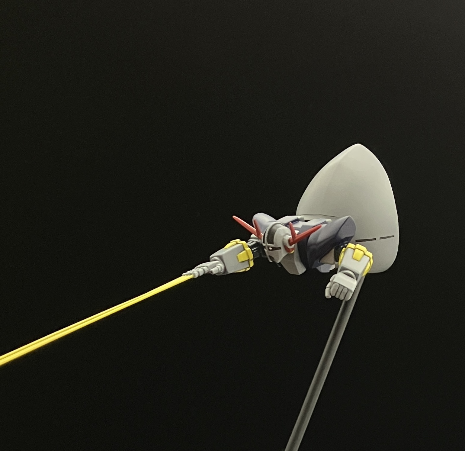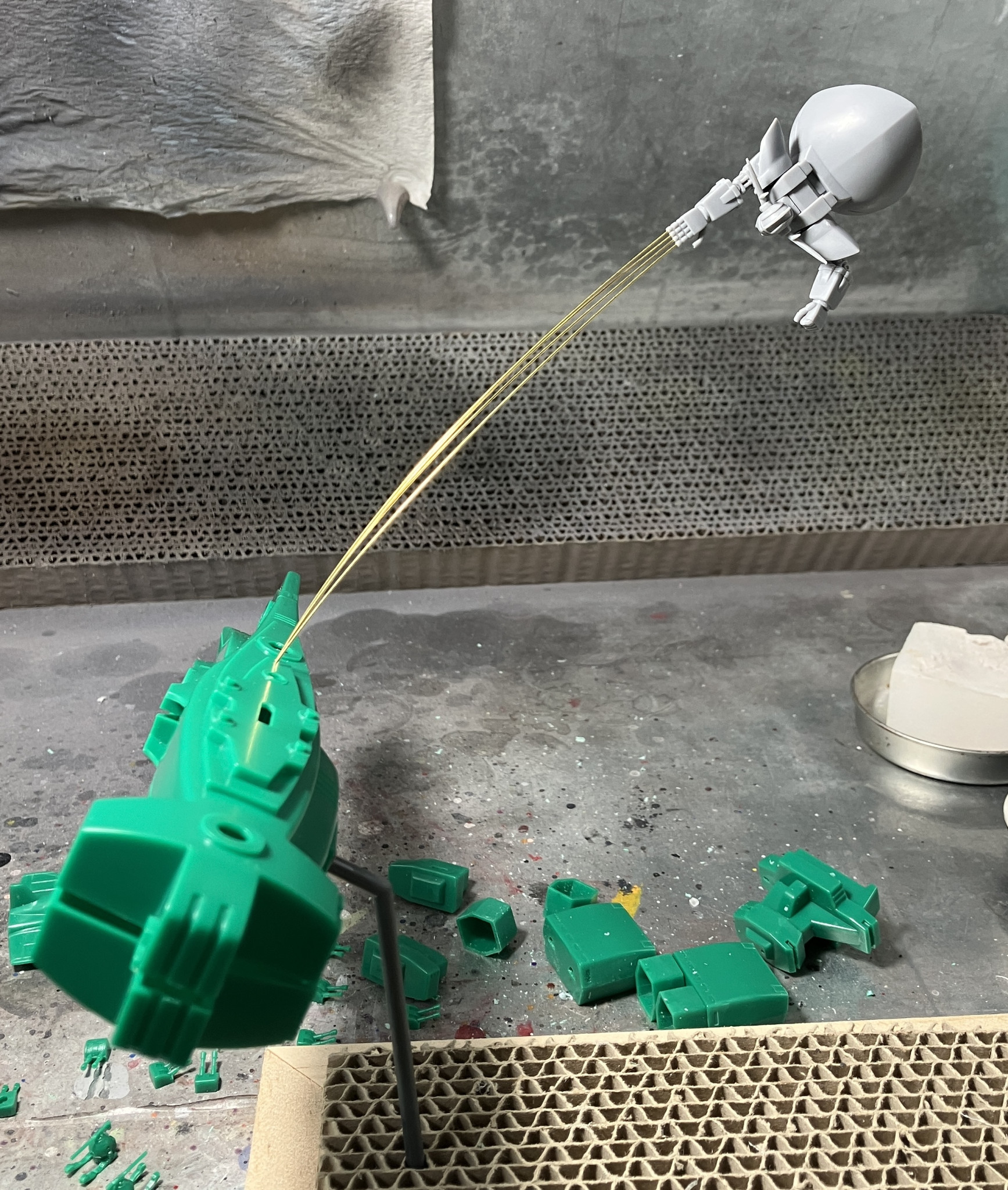当初ジオングは真鍮線のビームで支えるつもりでしたが、支えられずに情けない姿になったのでスタンドを使いました。
