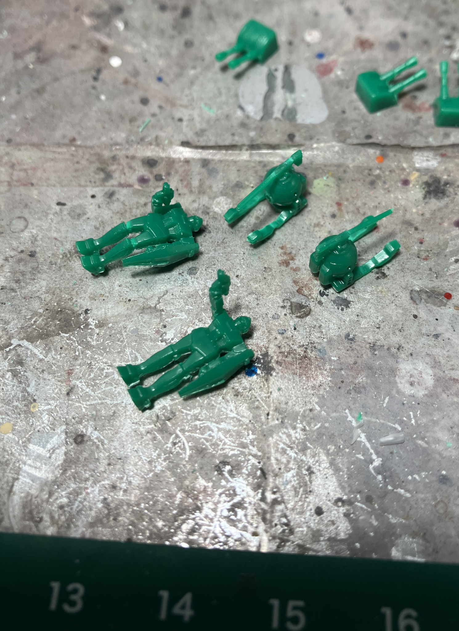 脚の合わせ目は消して、アンテナを尖らせライフルの穴は開口しま…