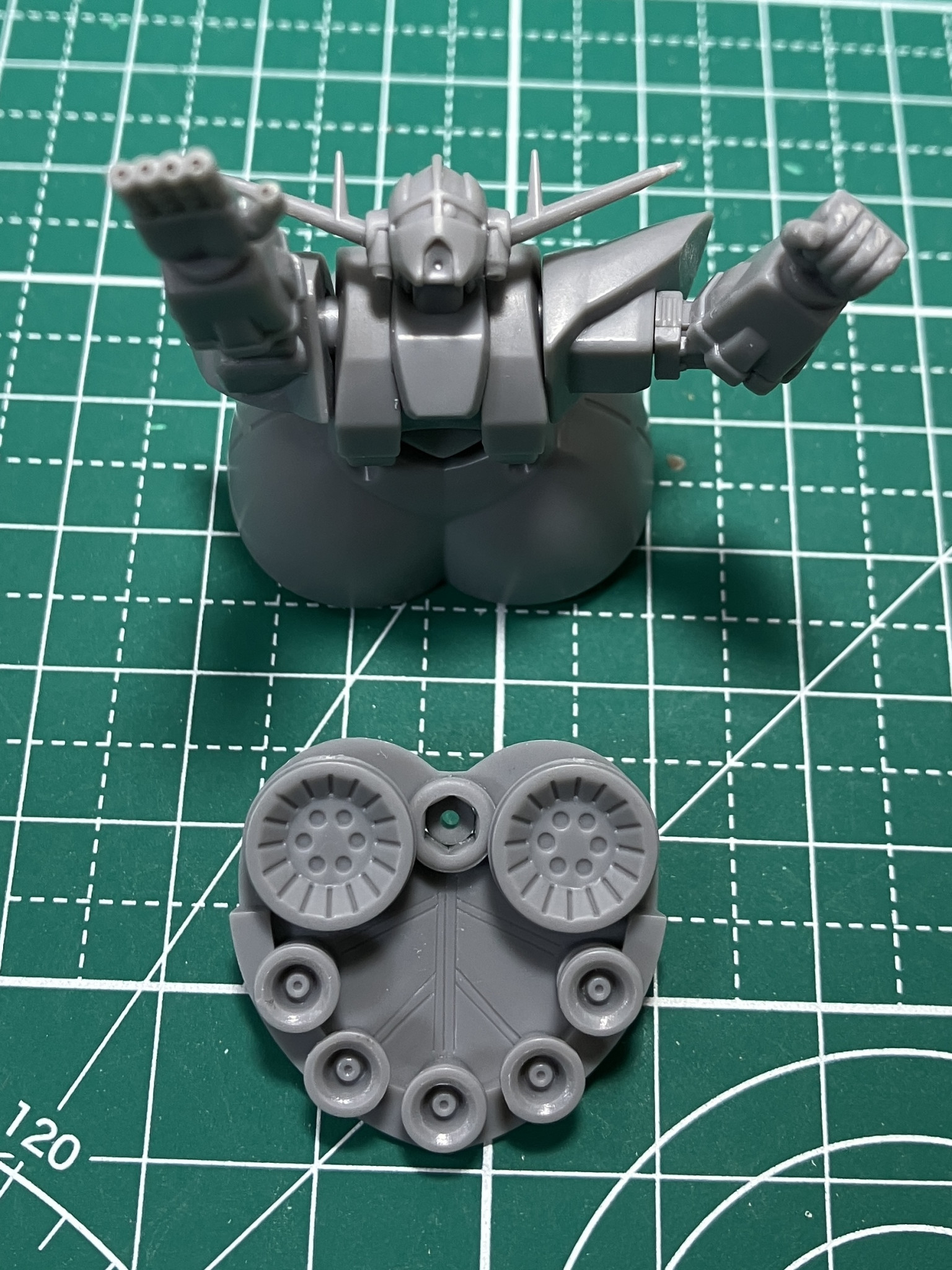 ジオングのスカート内はバーニアを切り離し、スジ彫りをしました。