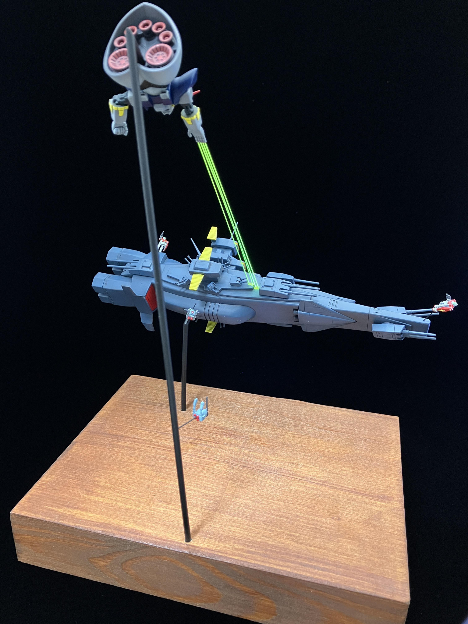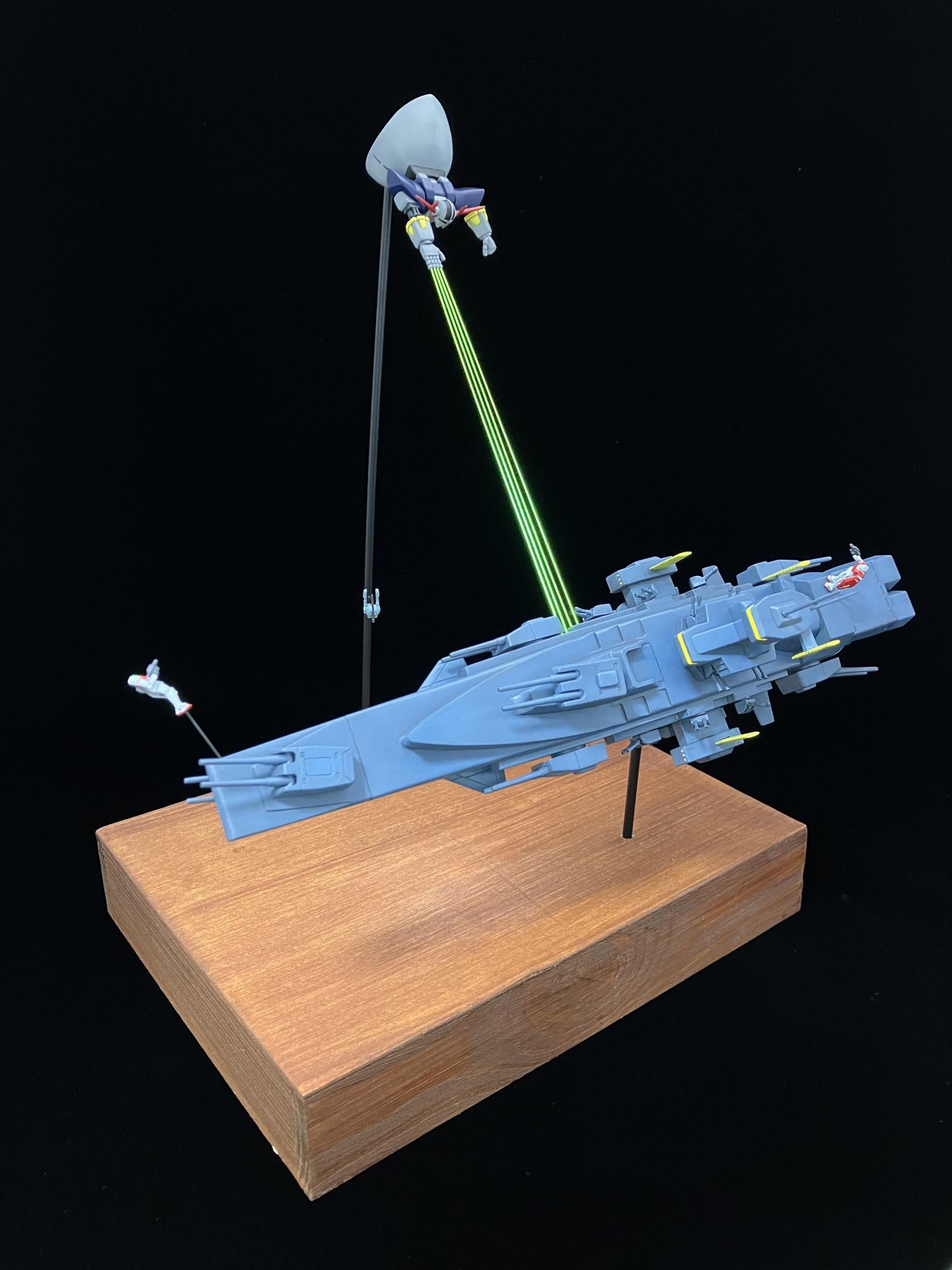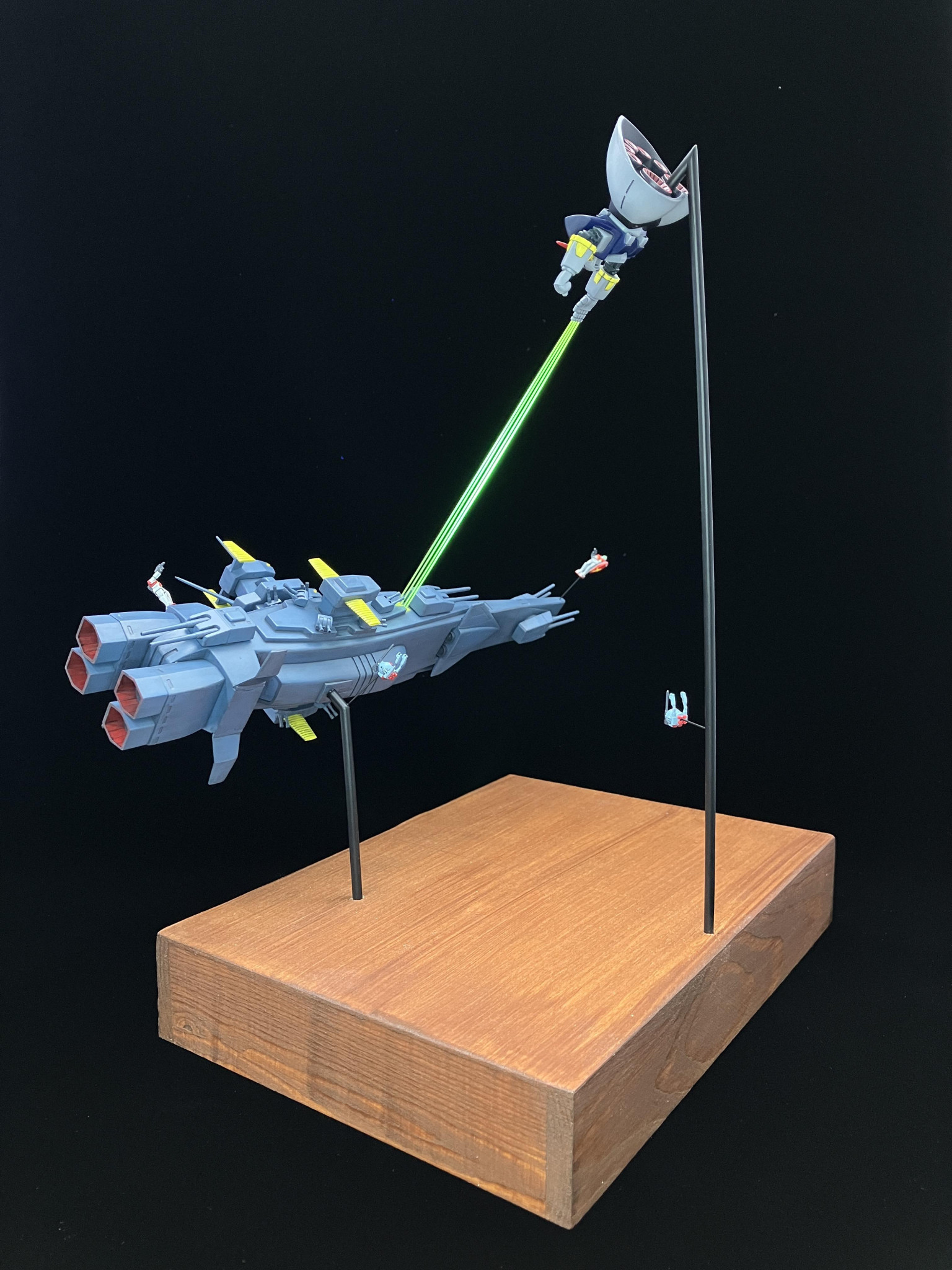 旧キットマゼランとチョコサプジオングでジオラマを作りました。以前作例で似た作品を見かけた事があり、機会があれば作りたいと思っていました。ジオングが大きいですが雰囲気が出ていれば幸いです。