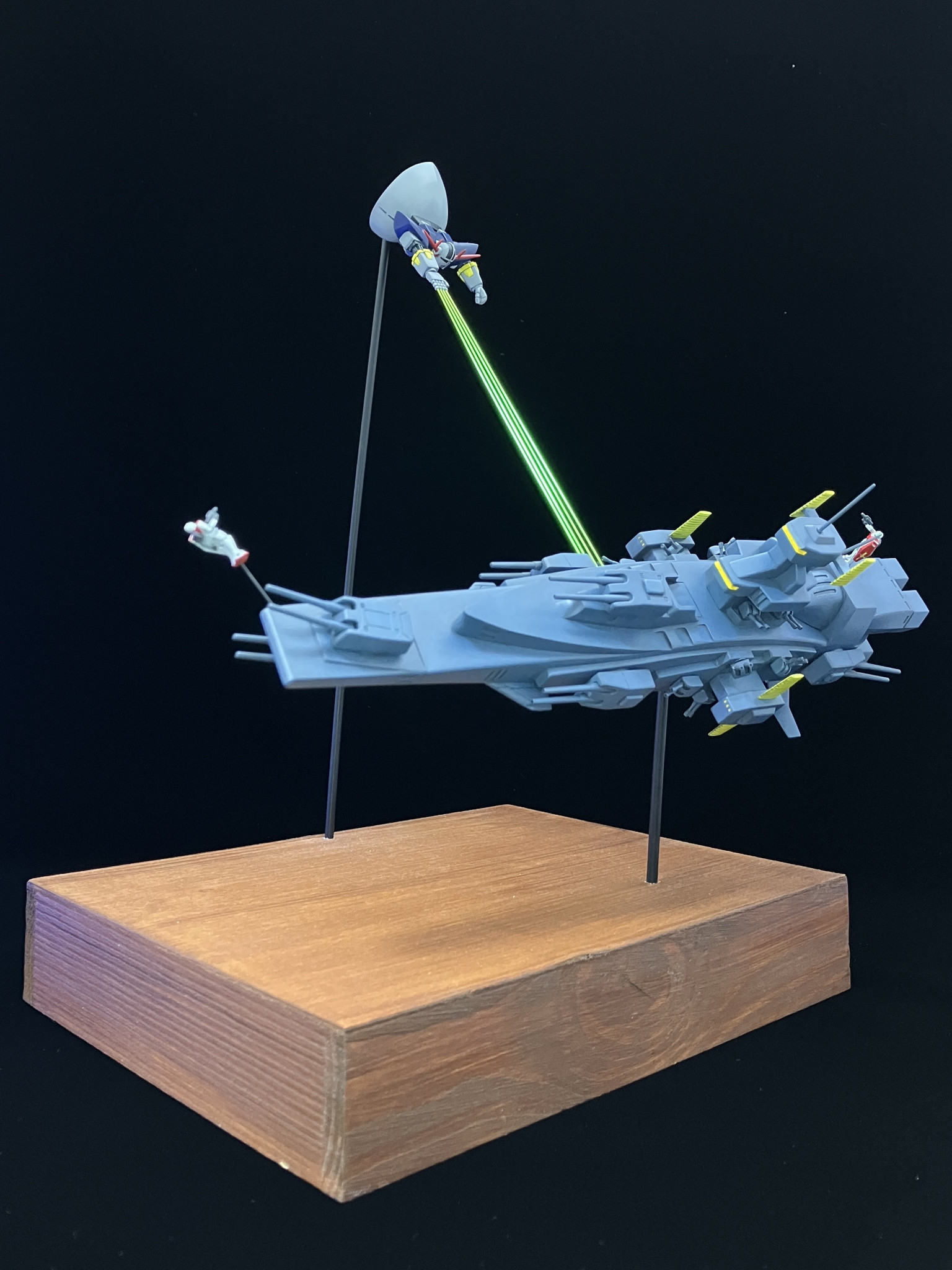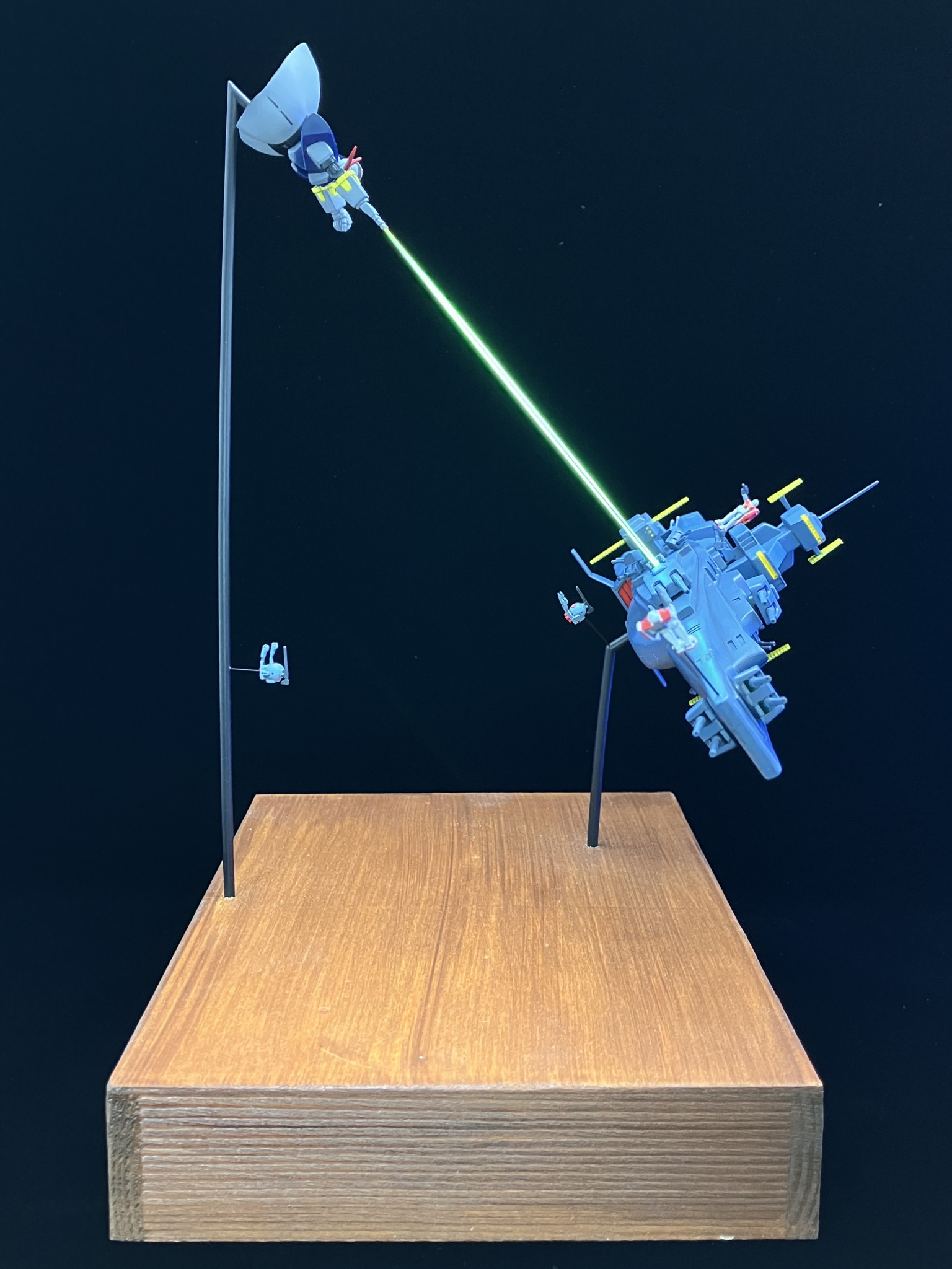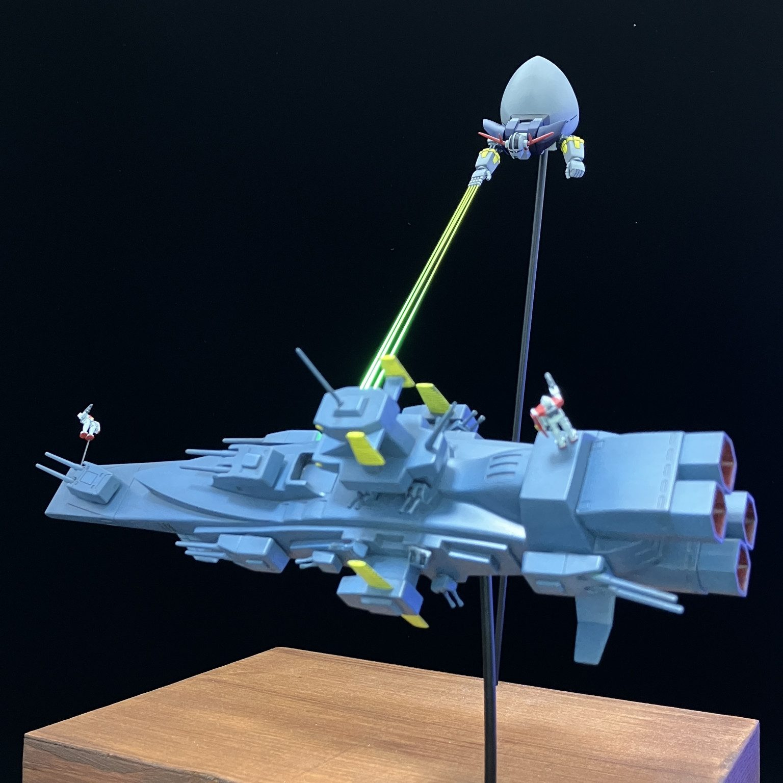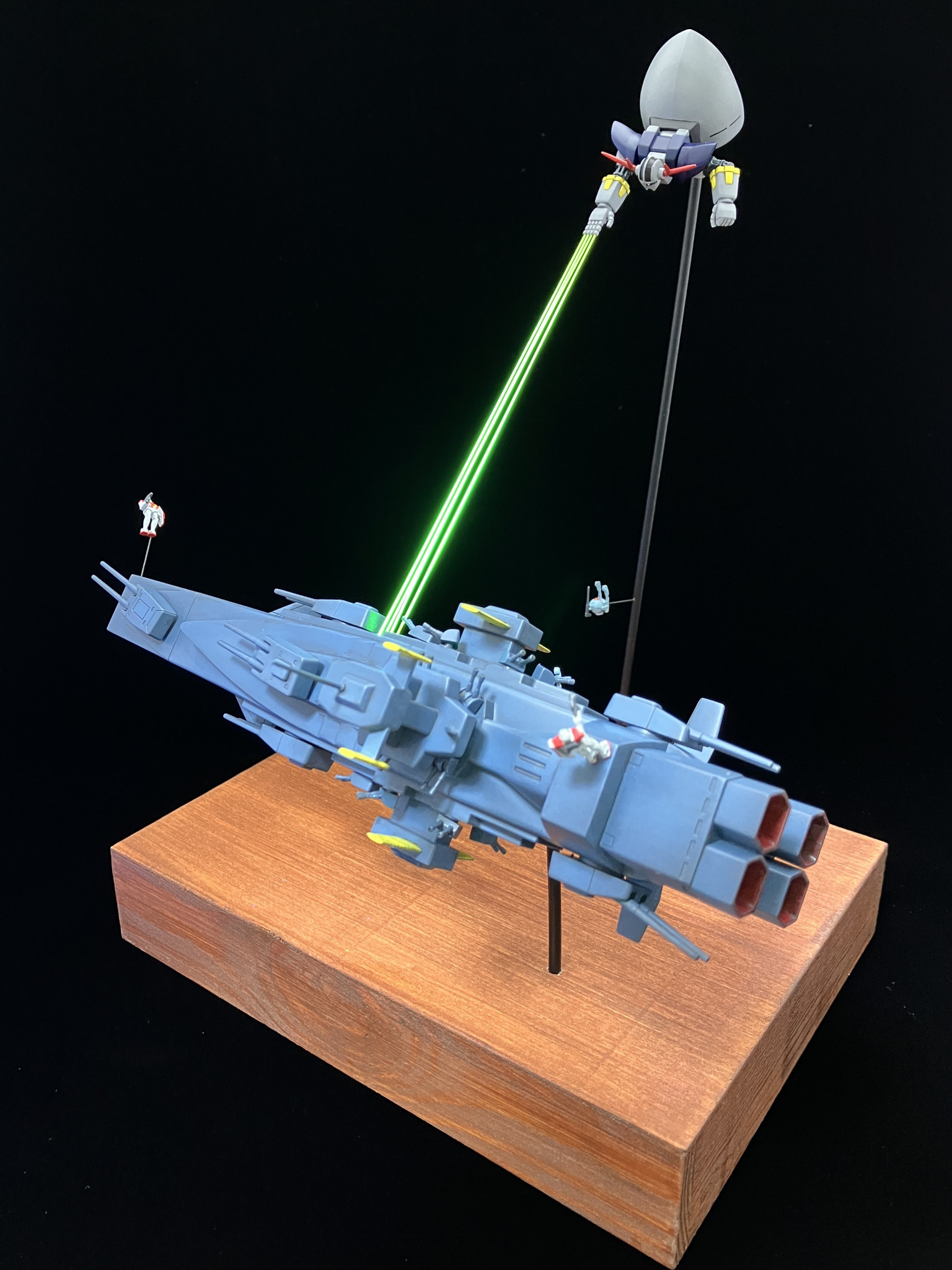 旧キットマゼランとチョコサプジオングでジオラマを作りました。以前作例で似た作品を見かけた事があり、機会があれば作りたいと思っていました。ジオングが大きいですが雰囲気が出ていれば幸いです。