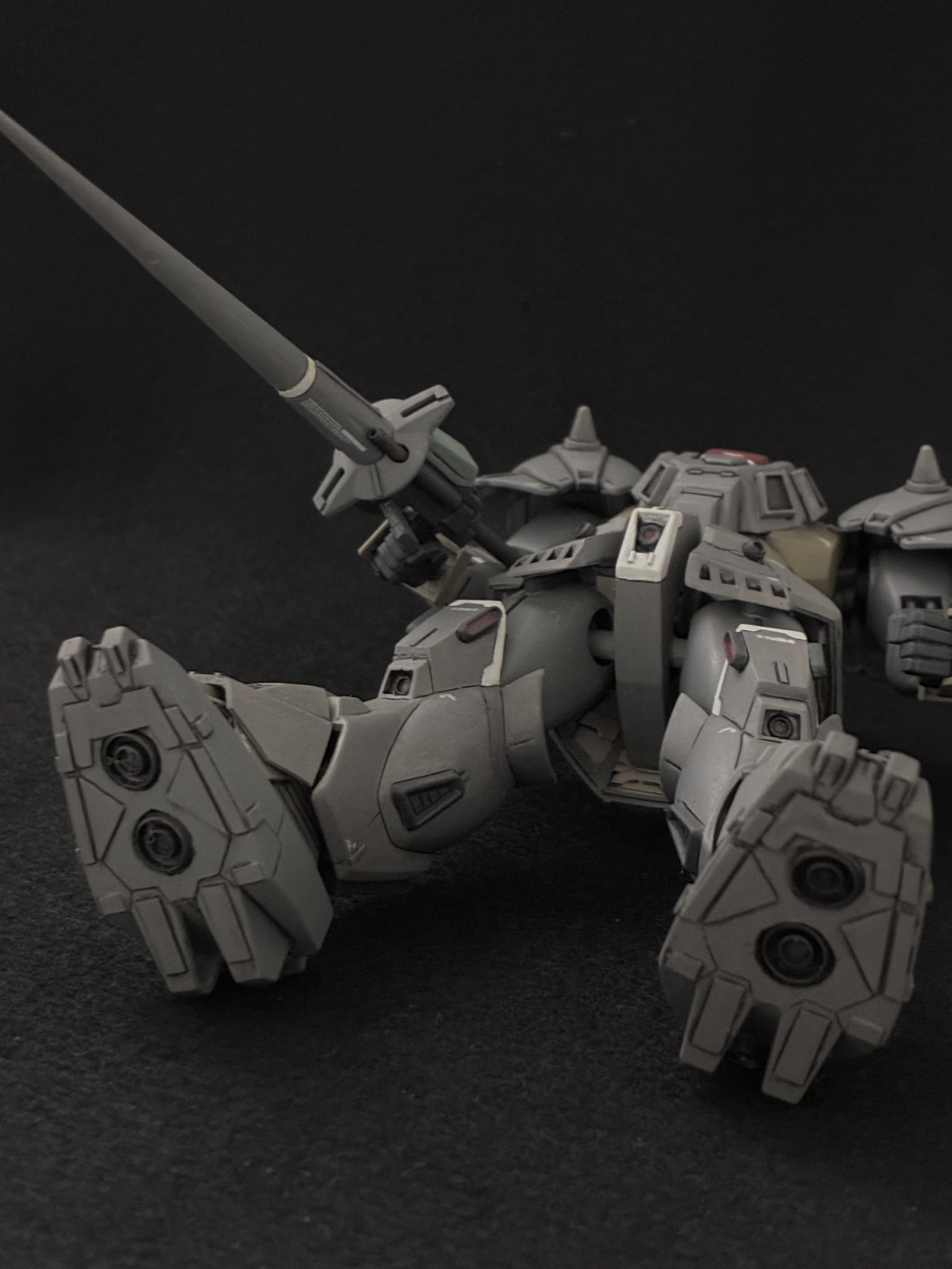 塗装はウォームグレー寄りのグレー、サンドイエロー寄りのカーキで、ほぼ設定通りの配色です。アレンジとして差し色に白なども入れてみました。