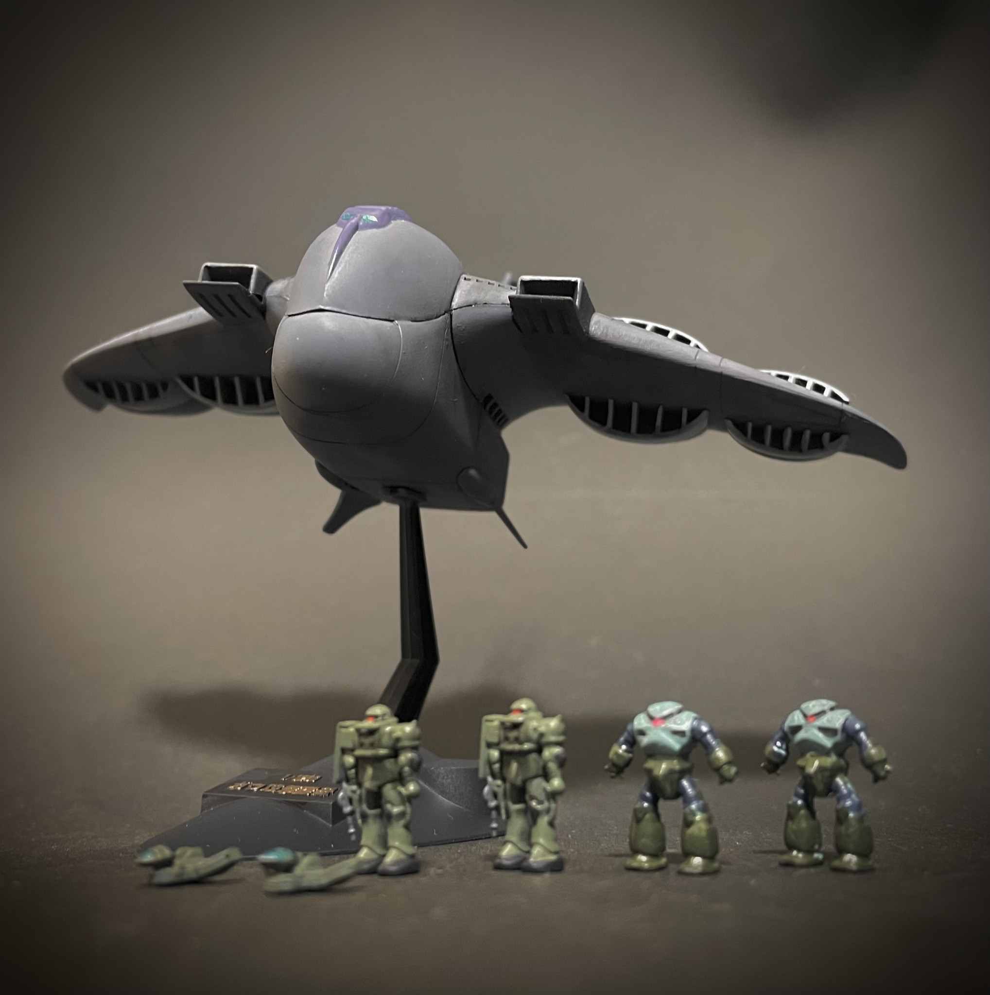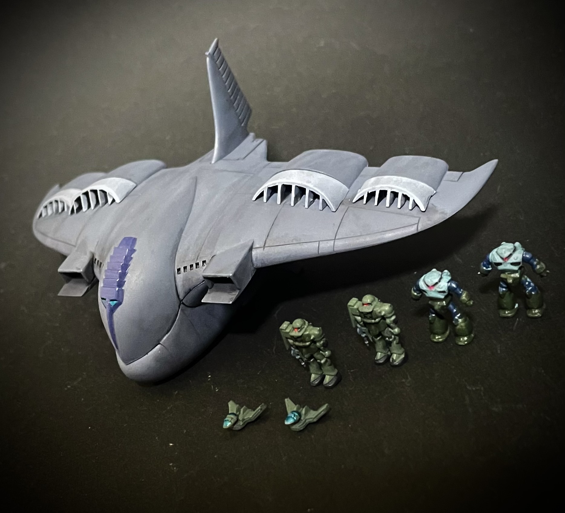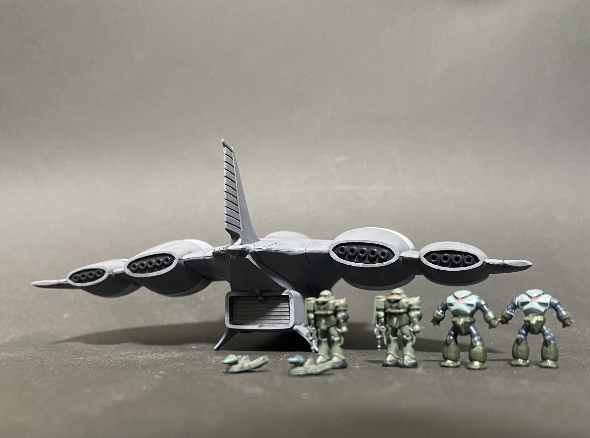 リアルな配色、イイですね。MSとドップの塗りは根性でしょうか…。