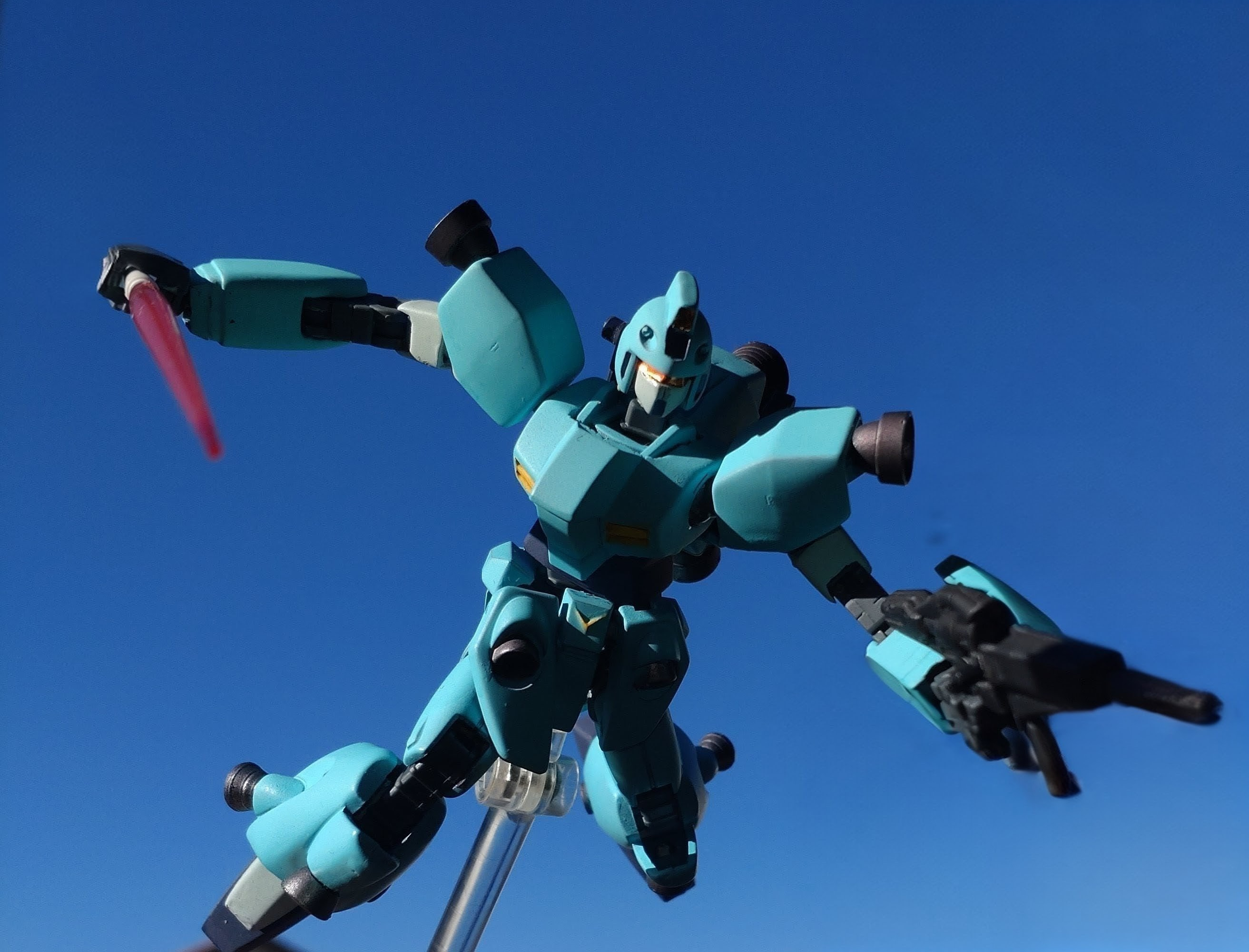 さすがの可動域拡大改造と武装再現で、アクションポーズが決まってます👍
