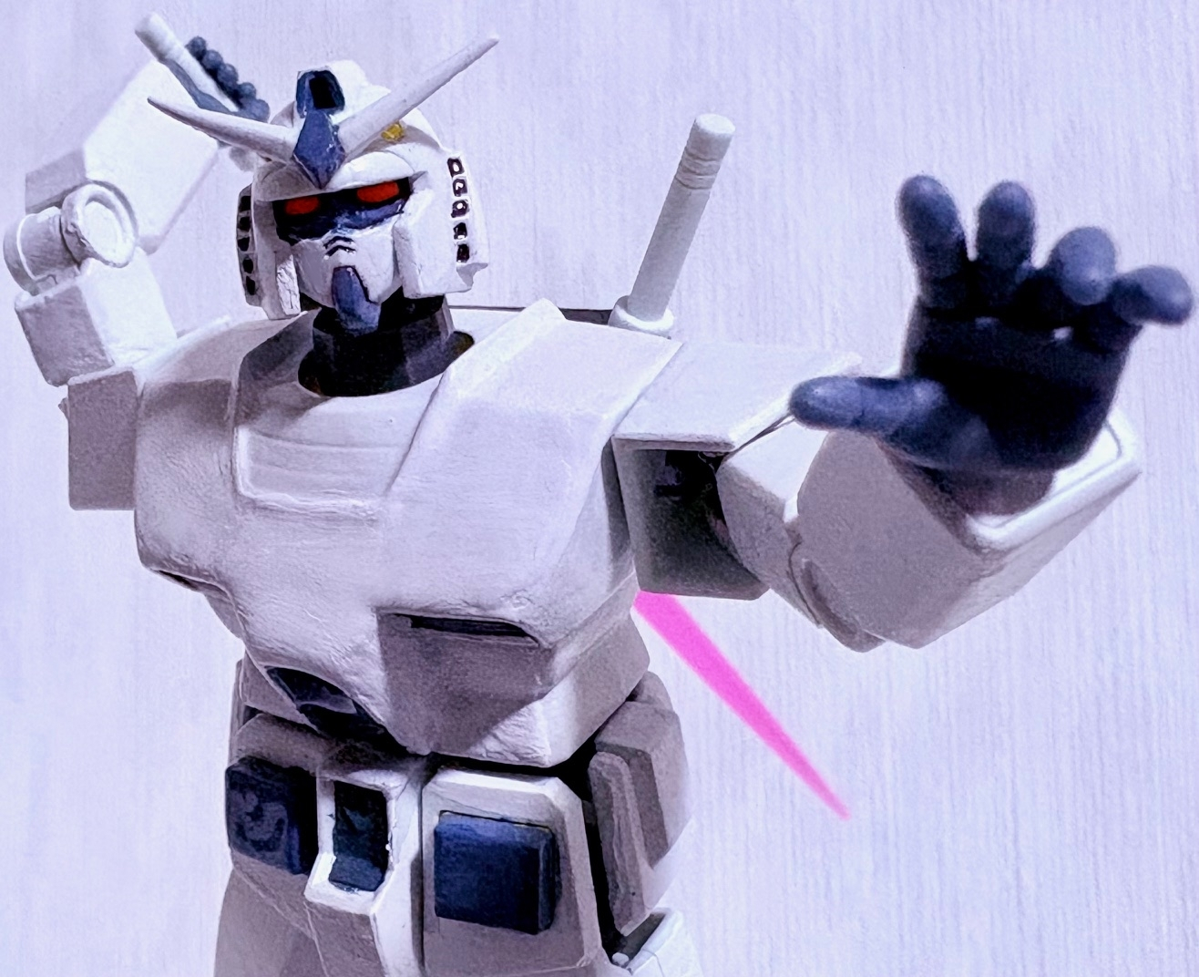 ローアングルで。こうしてみるとガンダムってやっぱり「白い悪魔」なんだなぁ・・・(zaku-kao9)