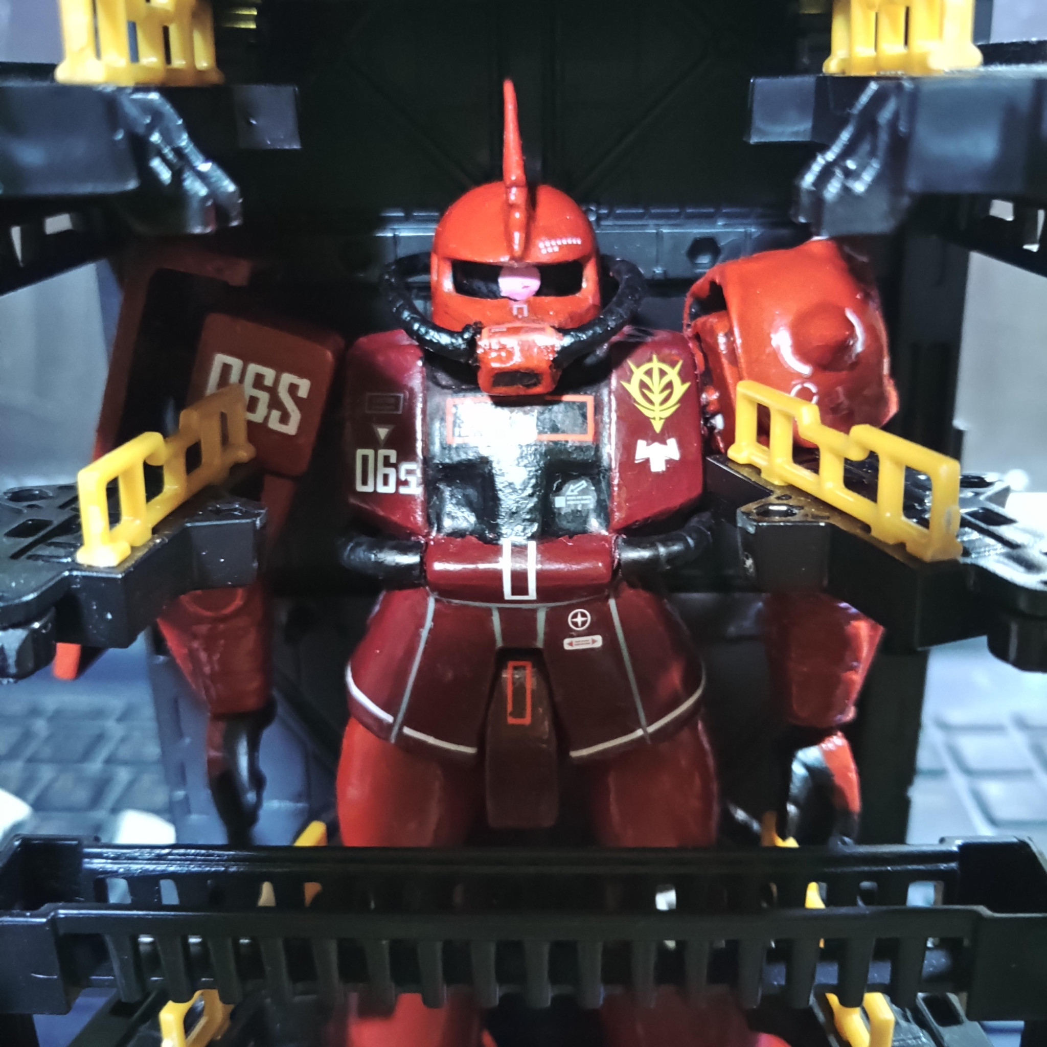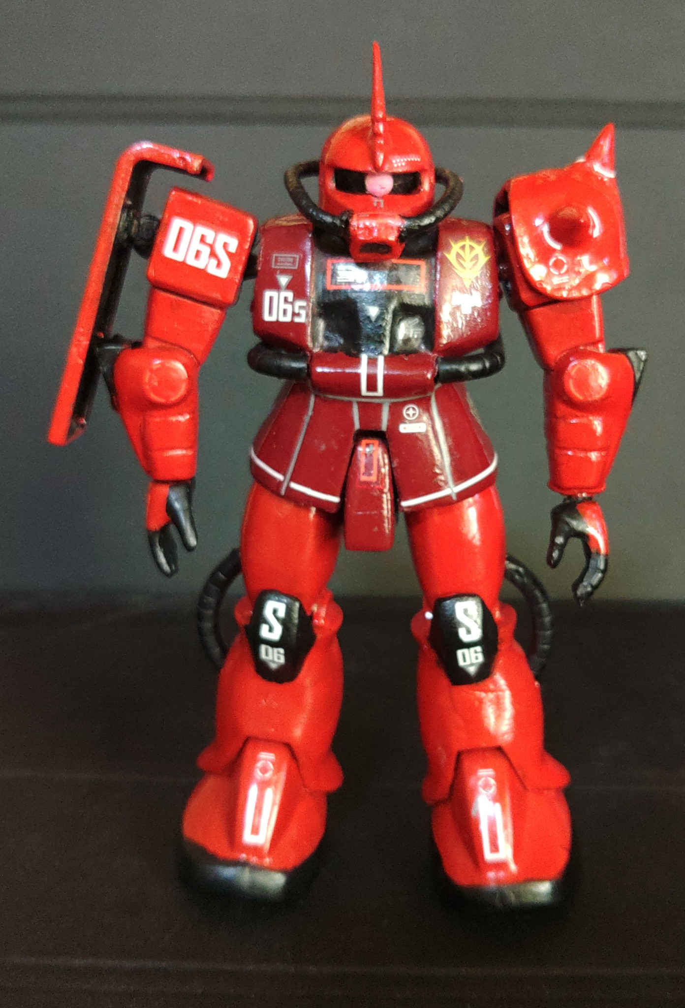 初投稿です。生暖かい目で見てやってください(笑) 家の掃除中に、はるか昔にコミックボンボン懸賞で当選した 1/144のシャア専用ザクが発掘されました。