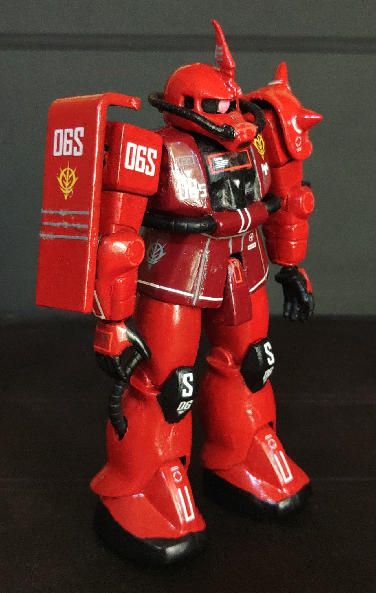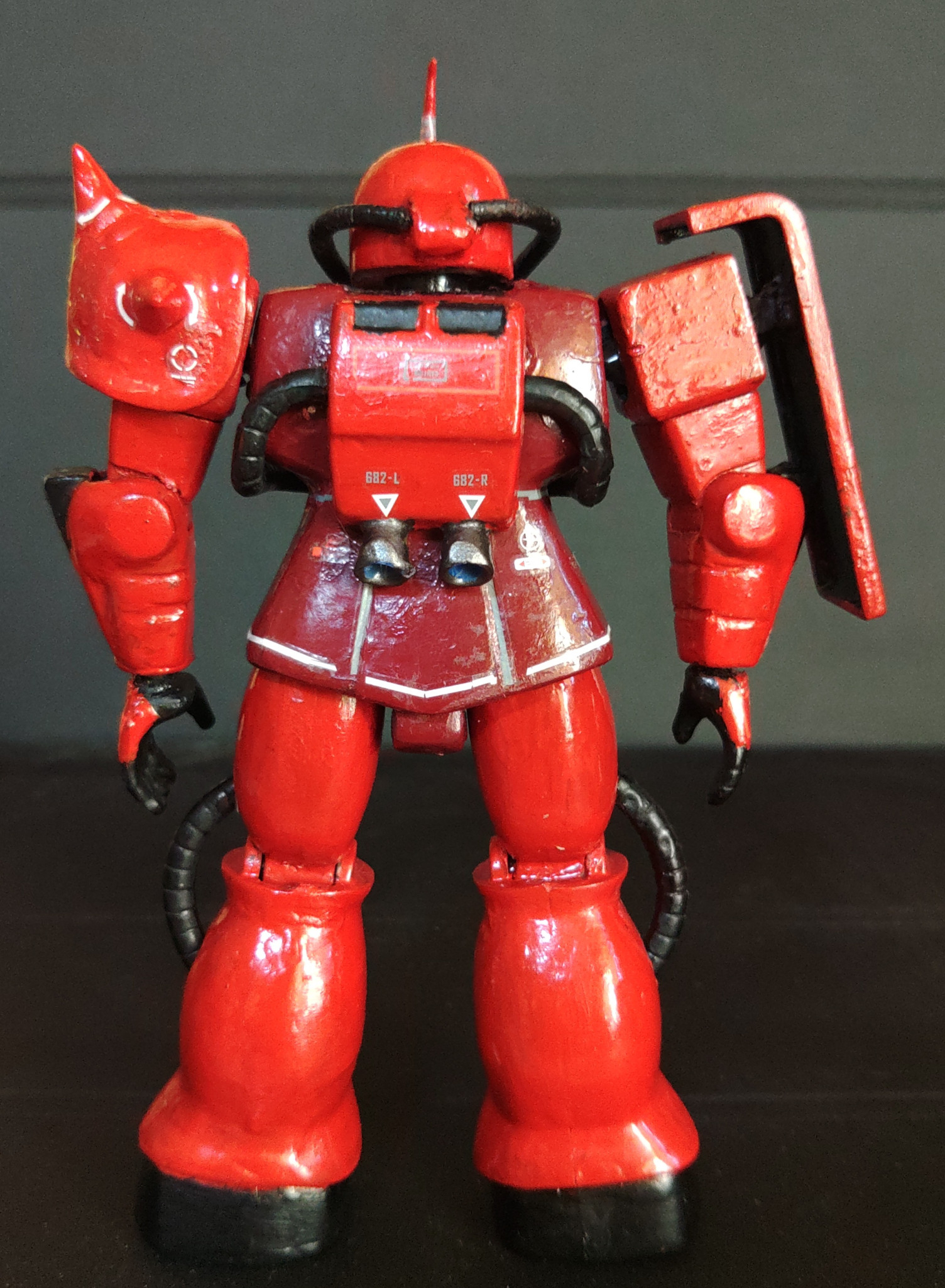 このザクのテーマは ①現行プラモとのプロポーション比較 ②私の中でイメージ(脳内変換)していた 『赤い彗星:シャア専用ザク』のカラーリングの具現化です。