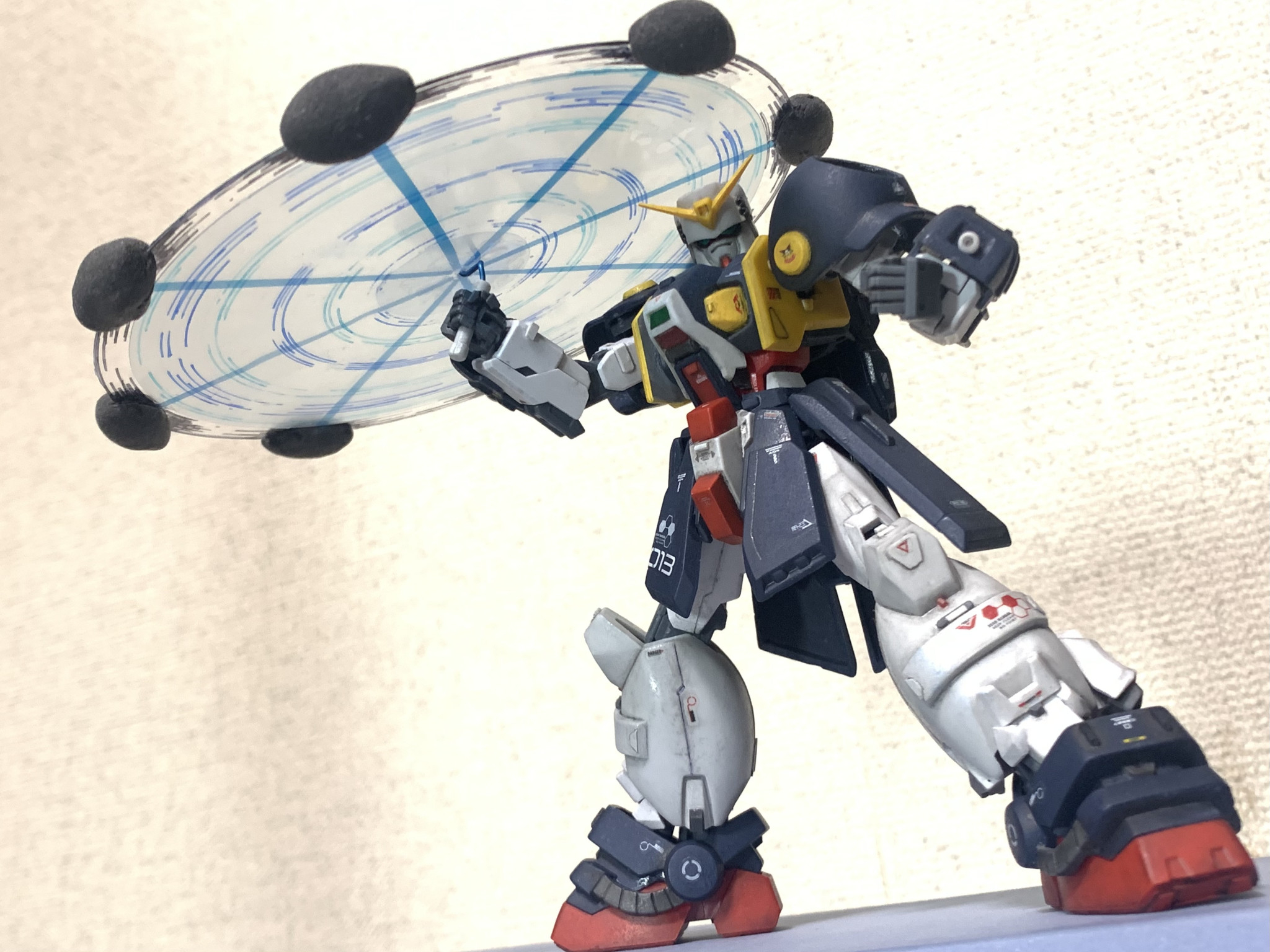 HGのGガンダムシリーズはエフェクトなども付属するのでグラビトンハンマーぶんまわしエフェクトとガイアクラッシャー地割れエフェクトも製作。