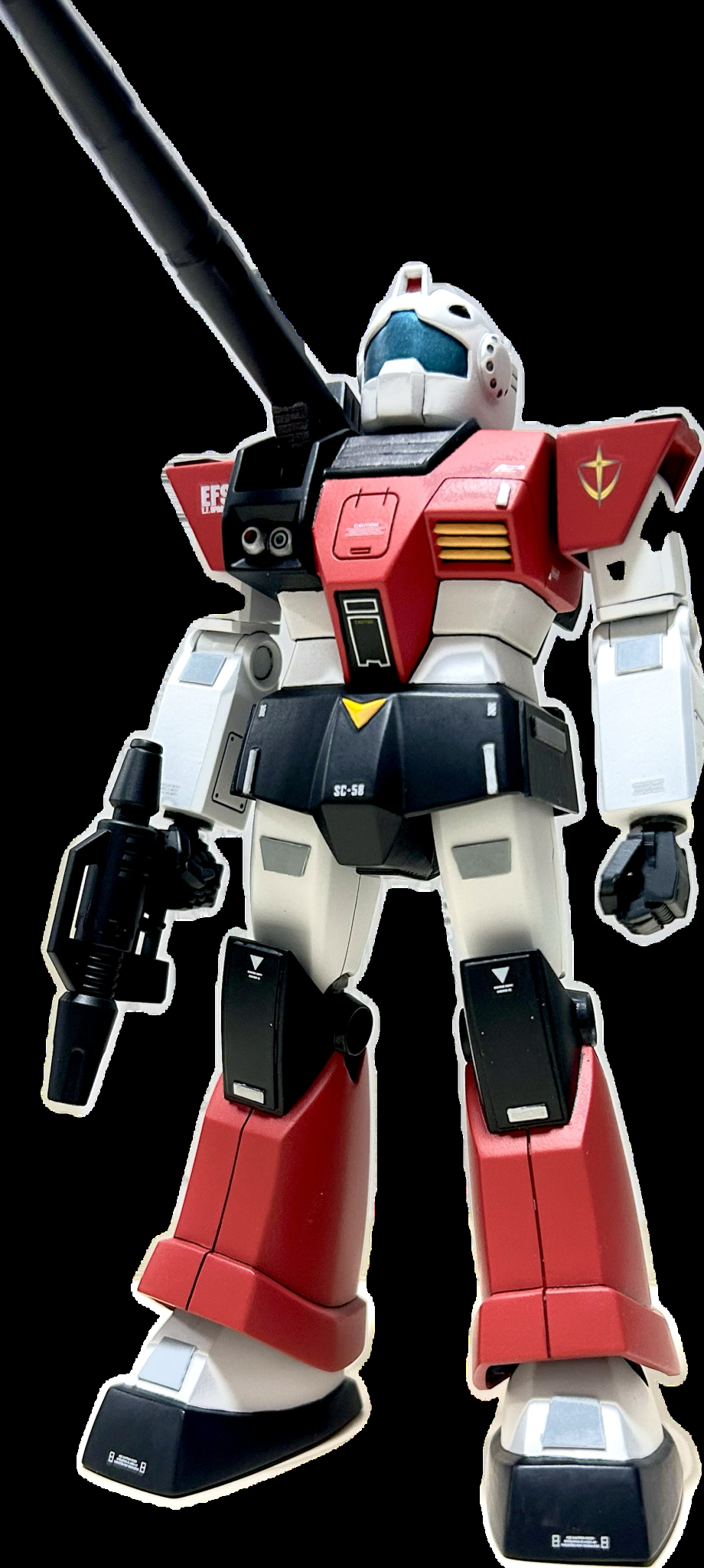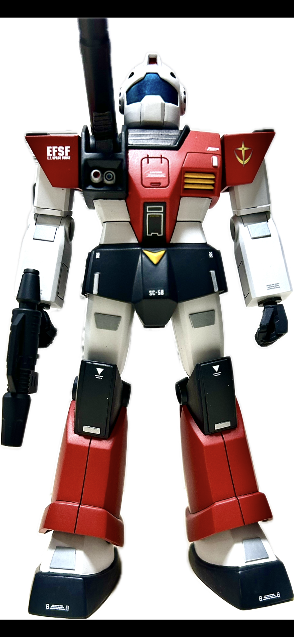 付属のデカールが変色していたので手持ちのデカールを使いました。肩の連邦マークなどカッコよく貼れたと思います。
