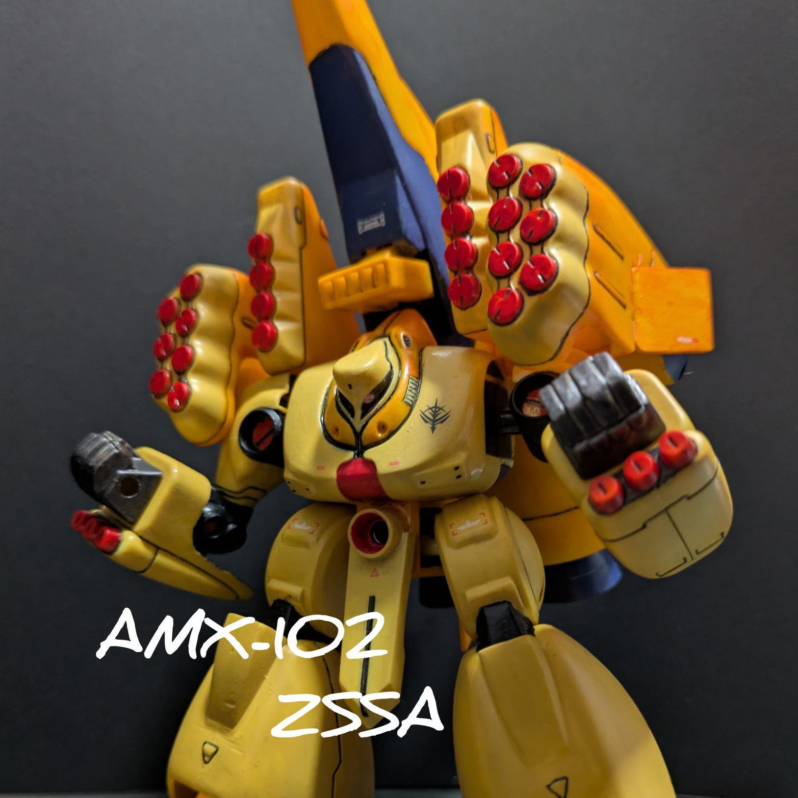 おぉー(zaku-kao10)僕の好きなZZからズサを見れるとは❤️ミサイル持ってくるために作られたモビルスーツなんで凄いゴツゴツして迫力ありますね!