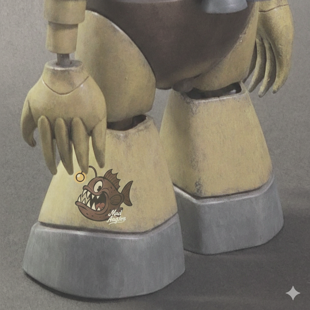 AIに描いてもらおうってことで作りました。ノーズアートならぬカーフアート(ふくらはぎ)。マッドアングラー隊の妄想ロゴです。