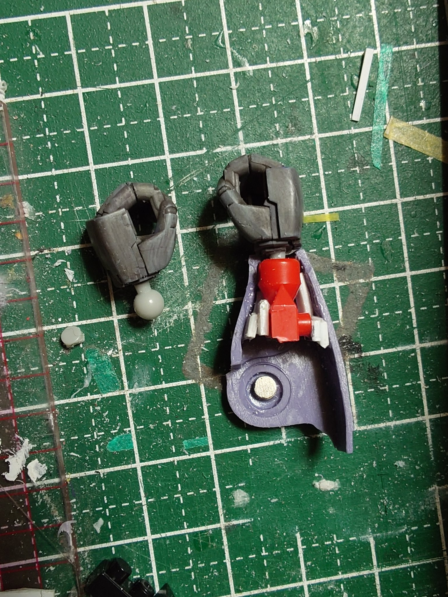 前腕との接続は肘の突起を切り落とし3ミリネオジムを仕込みました