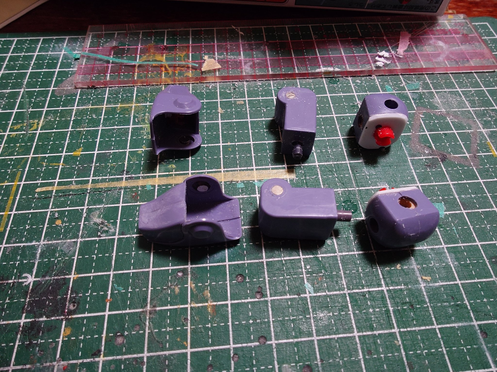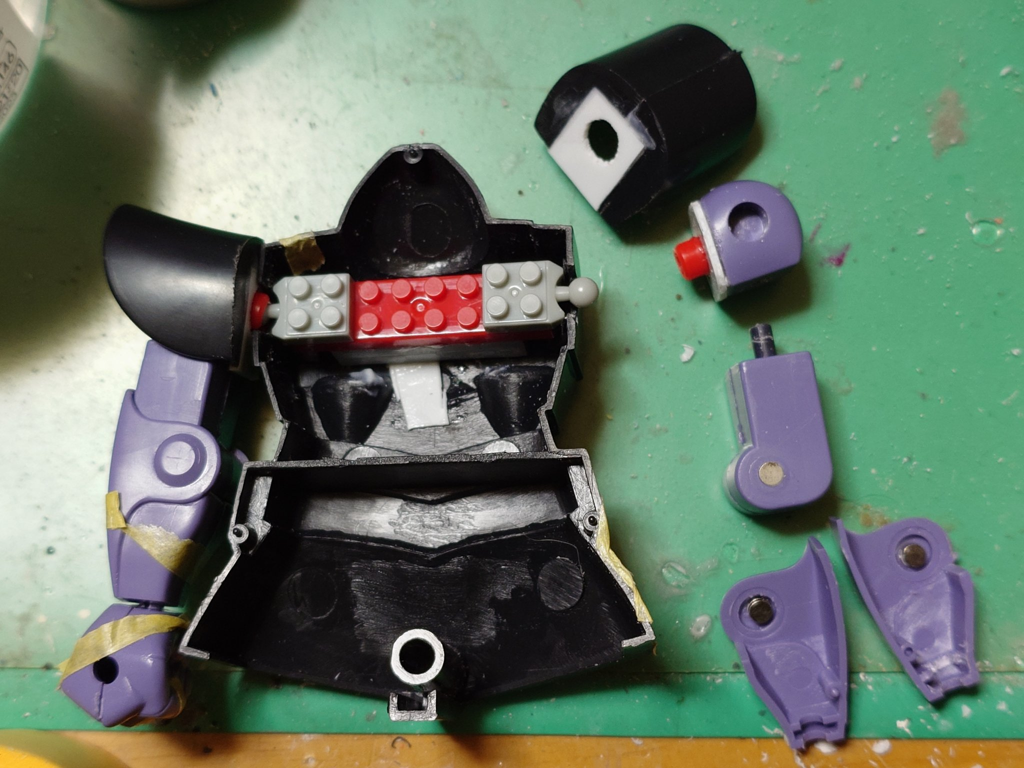 肩の付け根を切り飛ばし幅詰め&プラ板でふさいでレゴブロック接続に