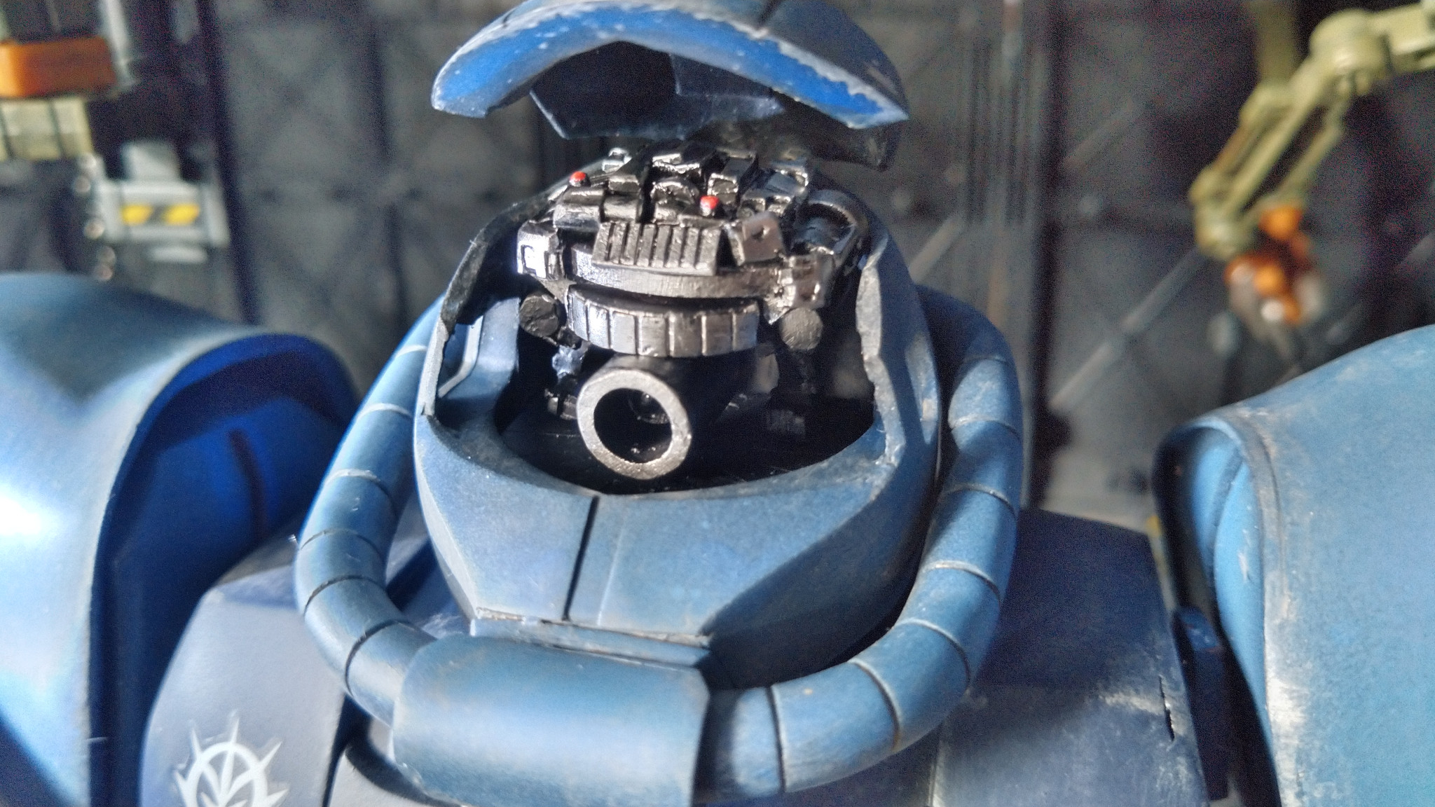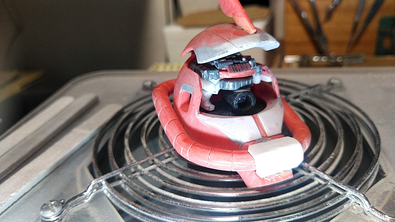 頭部開口、モノアイ可動及び脳ミソ的な部分作成。