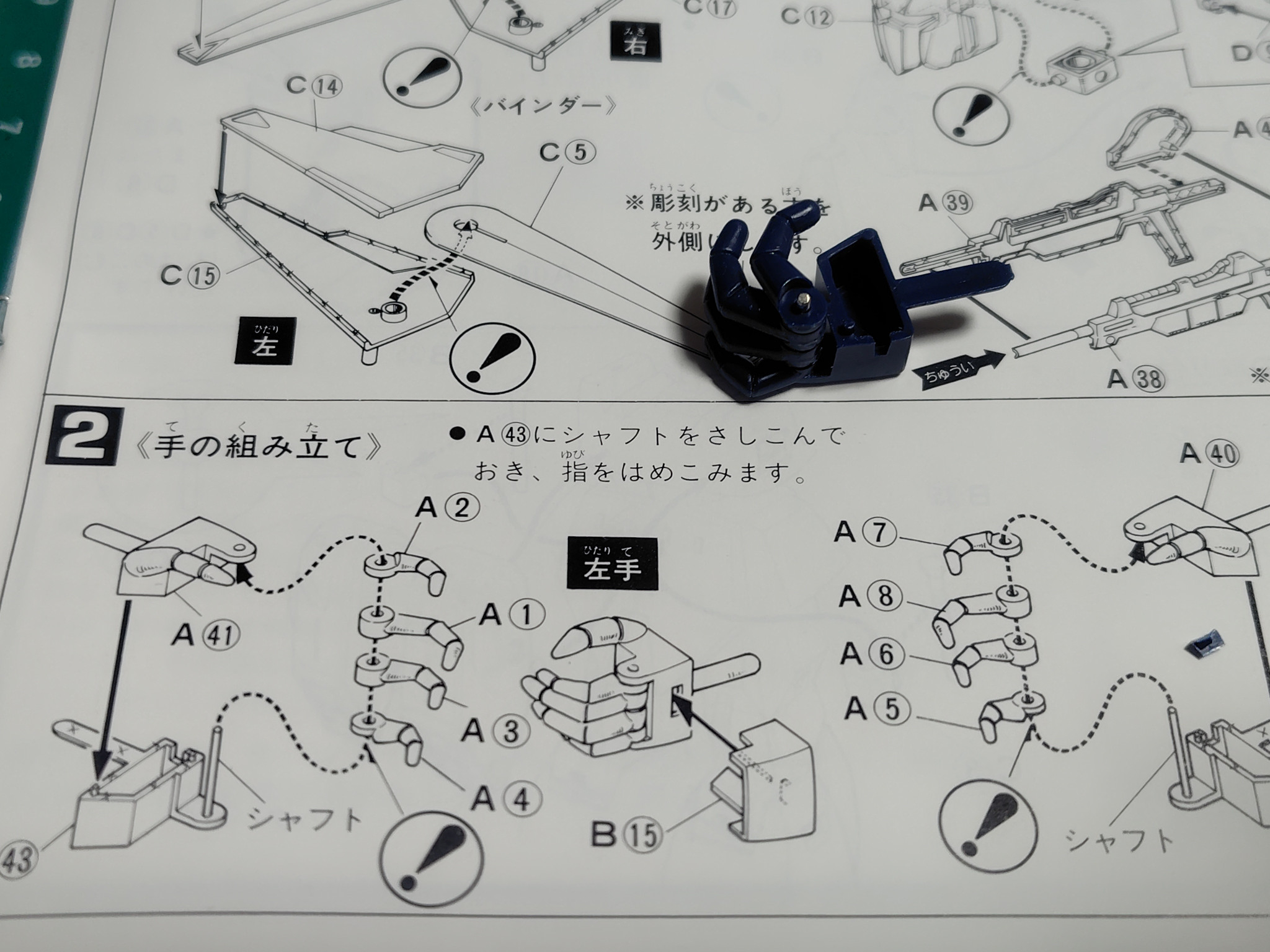 金属シャフトを使ったハンドパーツ。ちゃんと指の長さが一本一本違います。ここの組み立てに子供の頃苦労した覚えがあります。
