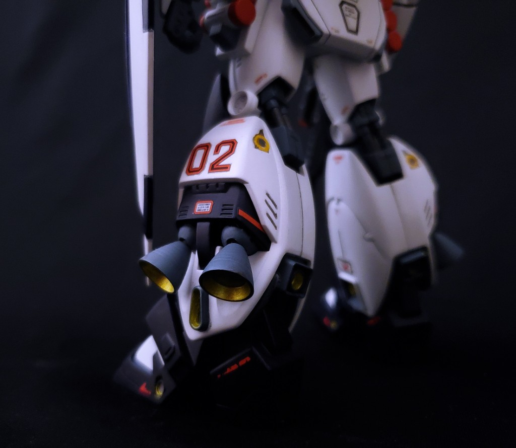 バーニア内部は光沢仕上げです。足は内側に可動できるように範囲を拡大し、接地面が安定しました。