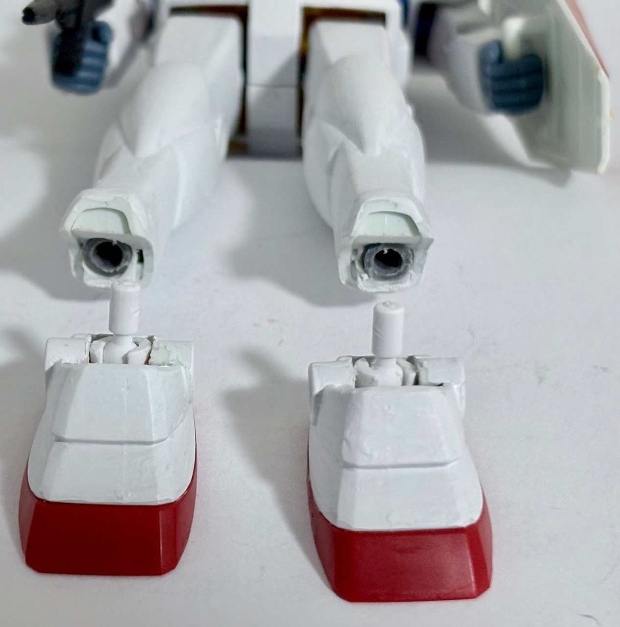 今回の改造ポイントは「足の付け根」である。いつもならここは改造しないが可動範囲を増やすために新たにホビーベースの白ジョイントを使った。