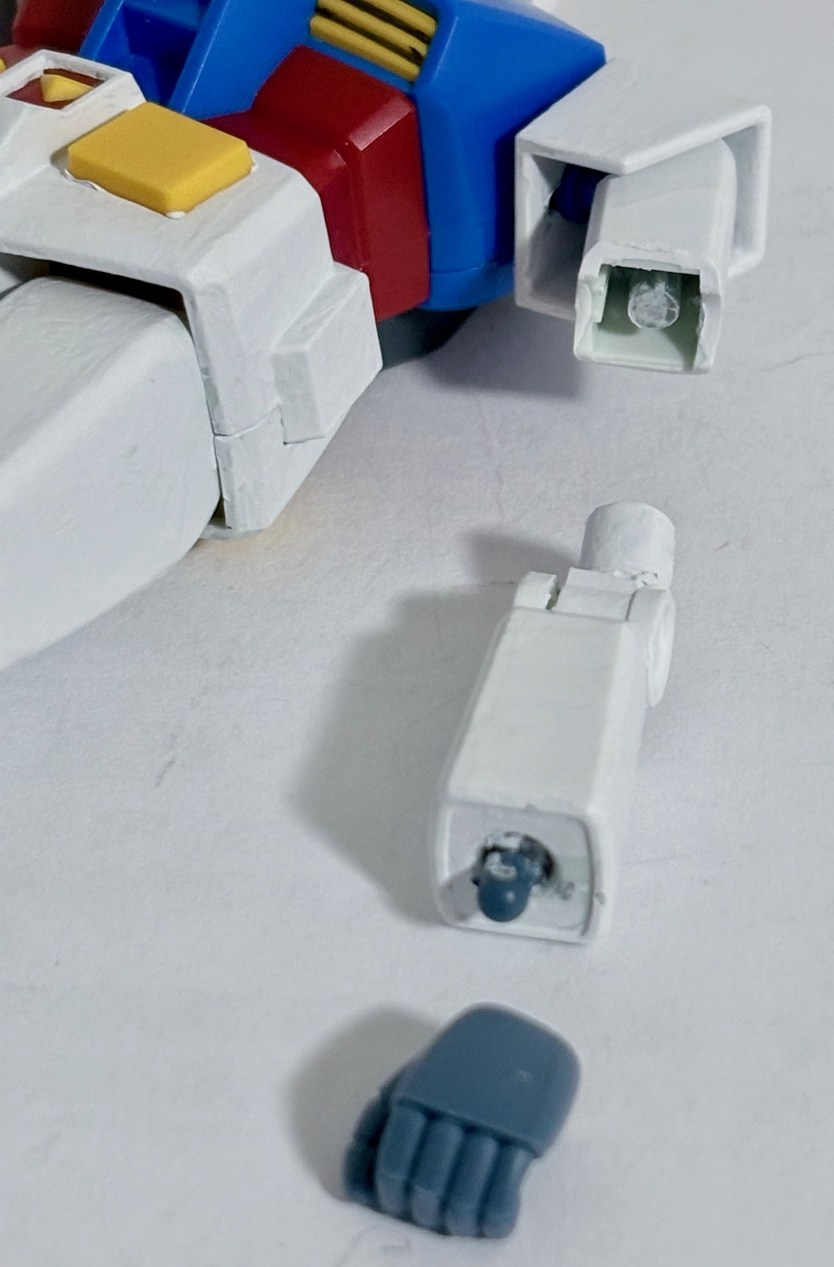 腕は前回同様に二の腕にジョイントキャッチャーを設けて可動できるようにして、手首はロボット魂のジョイントパーツを使用。