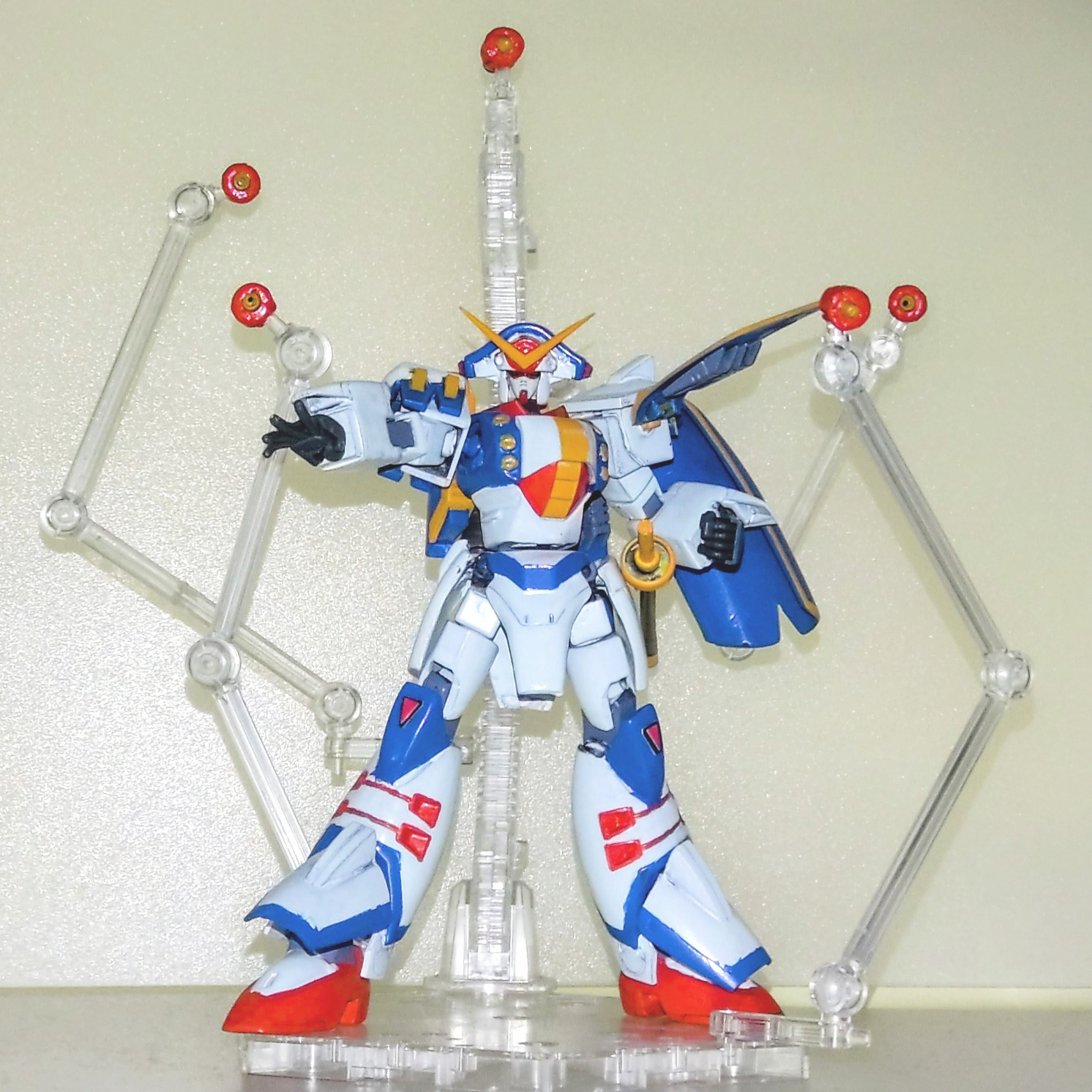 2015年製の改造品なのでHG版に比べると流石に劣りますが、リペアすることで一応ここまで立ち姿が決まるようになりました。