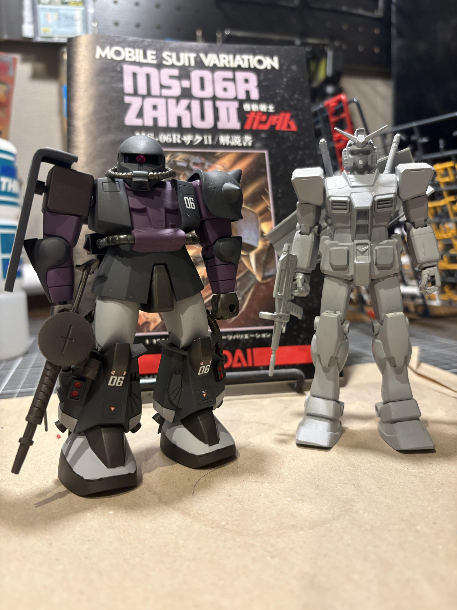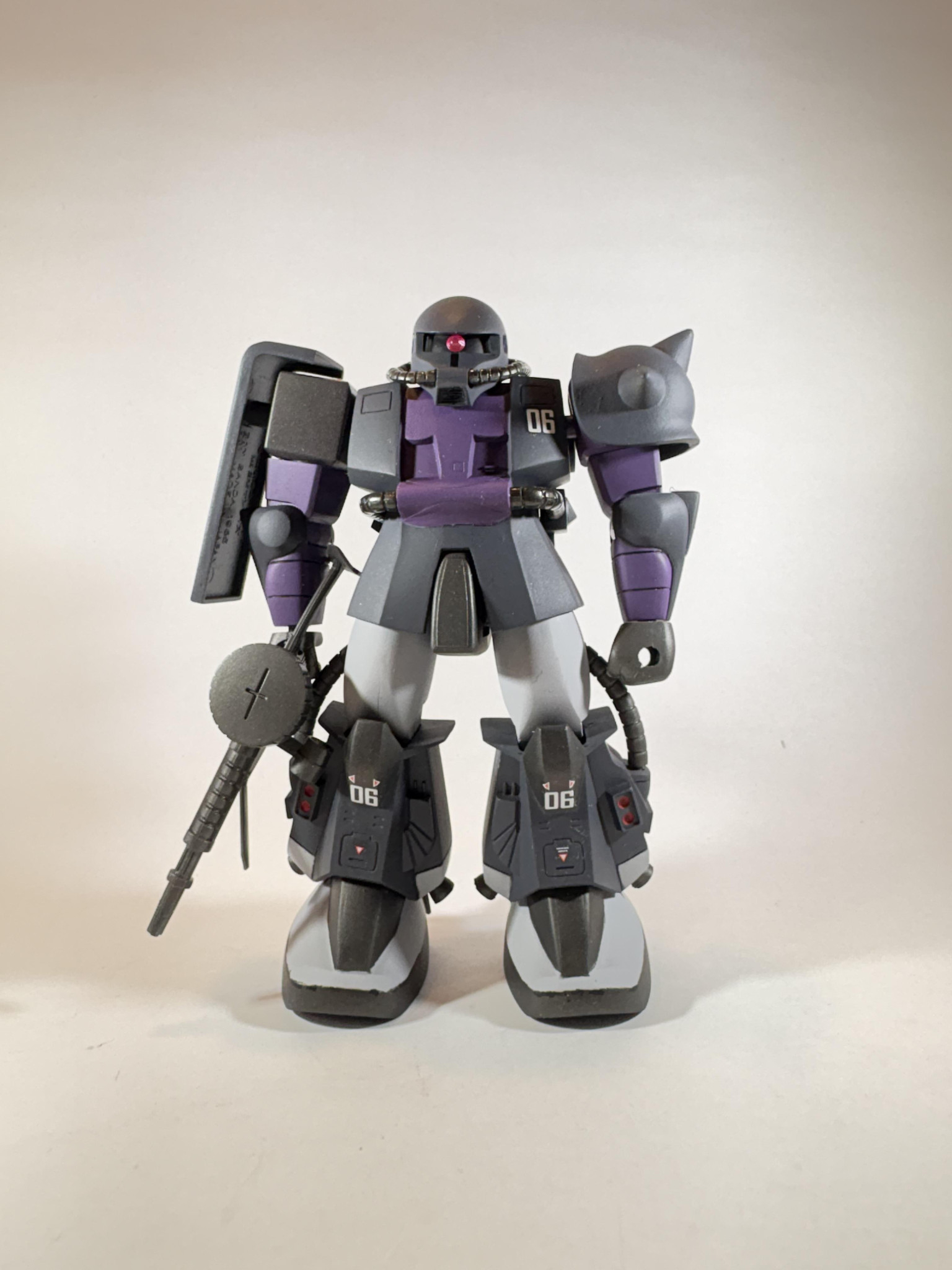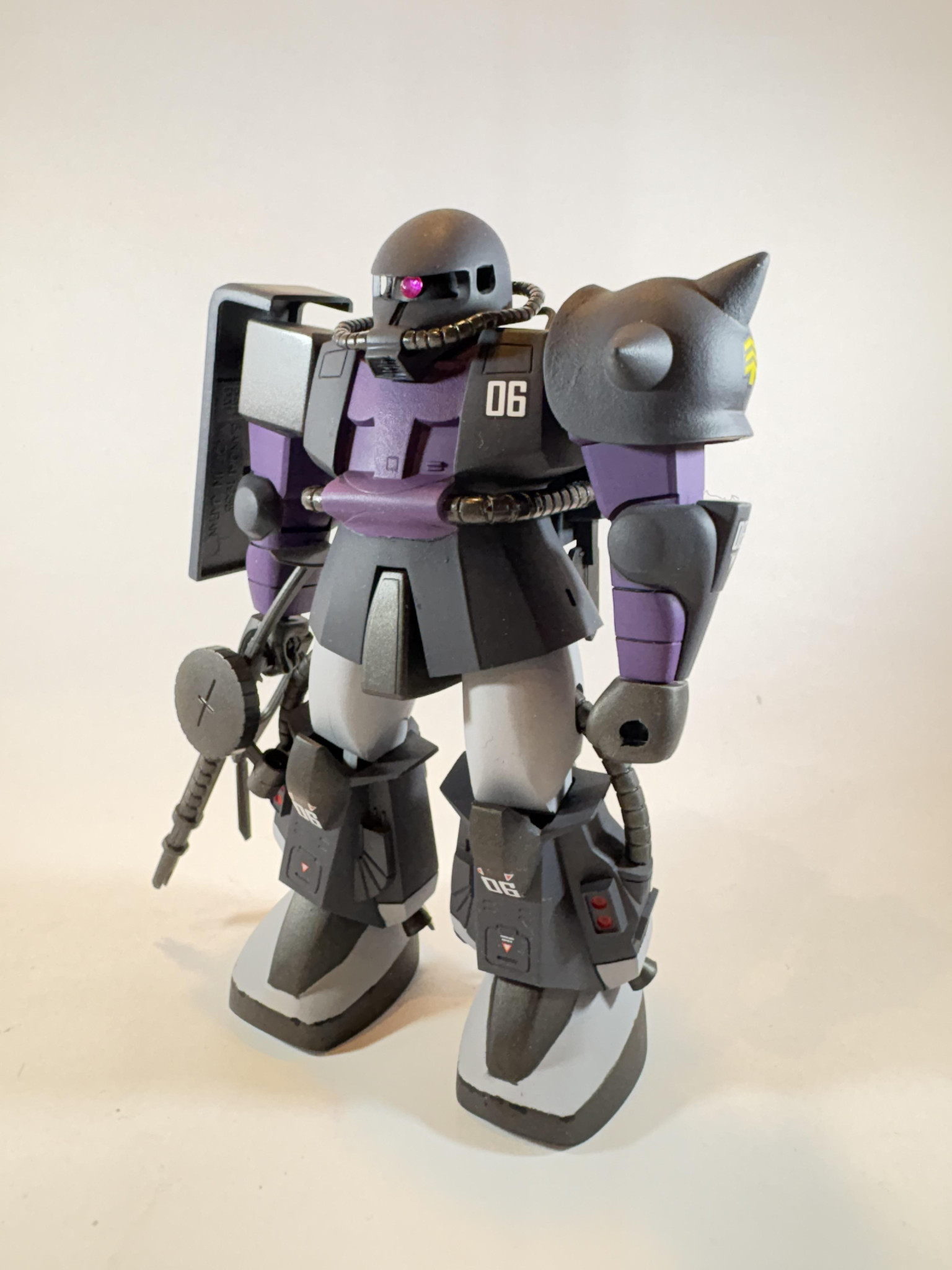 カラーリングは取説/解説書に掲載の写真に準拠しようとしたものの、近年の三連星のカラーリングに引っ張られどっちつかずな感じに。