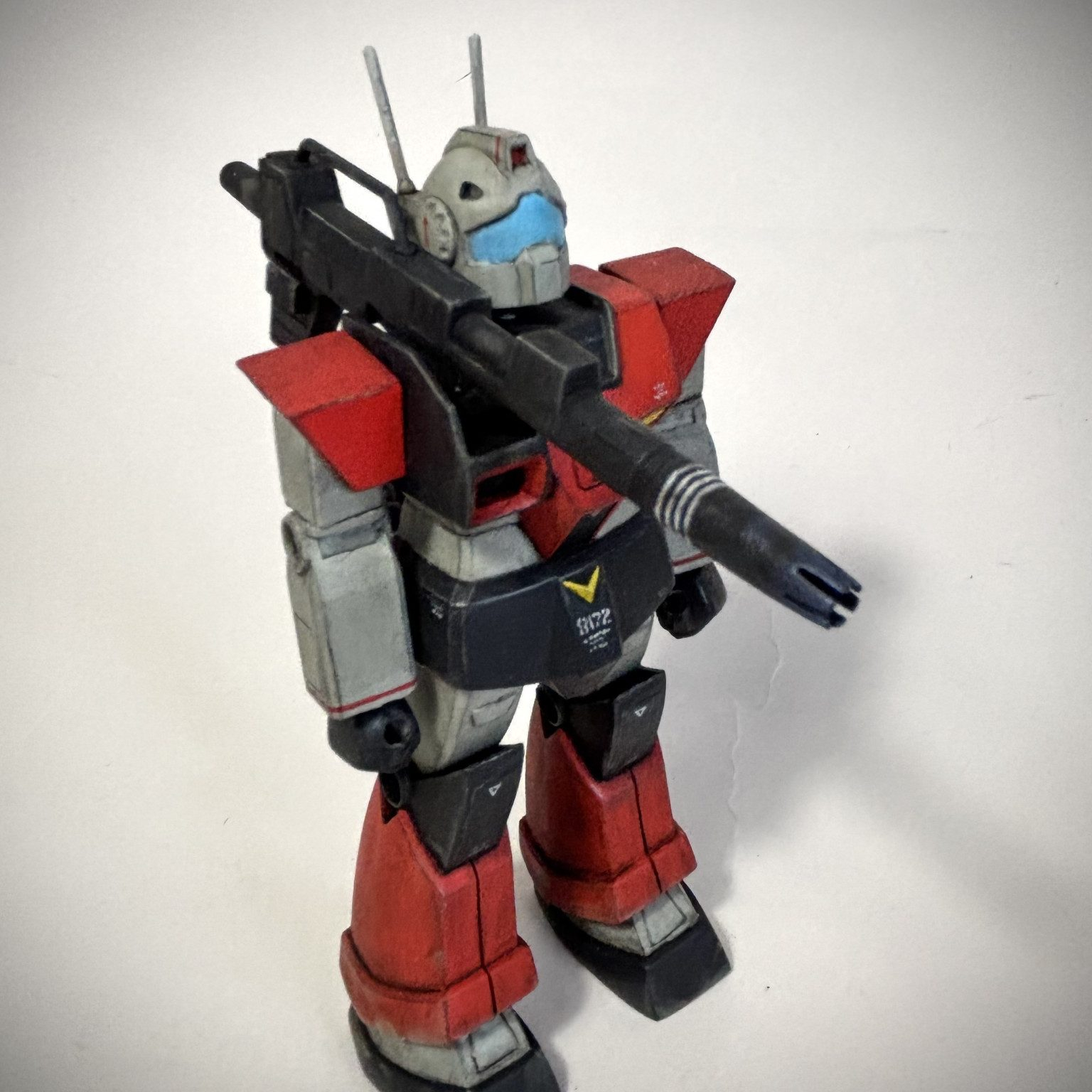 腹巻モグラ 旧キット 2026.02/22更新 ジムキヤノン(RGC-80) 72 58 いいねしたモデラー(58) 2 0 作品を共有 旧キットMSV 1/144、ジムキャノンを作りました。 MSVの中でも、一番はじめに作りたくなり買い求め、積んでいたキットです。なぜかHGシリーズででない不思議なキット。中の構造が複雑でこどものころはとても苦労した記憶があります。マーキングはすべて手描きです。全体的に汚しすぎたと反省しています。指も作っちゃいました。こうなるともう一機欲しくなってしまいますね。最後までご覧いただきありがとうございました。 機動戦士ガンダム MSV ジムキャノン RGC-80 無改造 筆塗り 旧キット コメント コメントをして応援しよう コメントにはログインが必要です ウドの珈琲屋 59分前 グッジョブです(*^^*)私も作りたいキットの一つです。MSVの箱絵は指差し確認やサムズアップ等人間臭いポーズが堪りません♪ 【侍モデリング部】ユッキー 2時間前 立ち姿最高です✨️ 腹巻モグラ こんにちは。 筆塗りで毎回四苦八苦しています。 ガンプラブームに呑み込まれた昭和の小学生です。 息子の成長に合わせプラモデルの世界に戻ってきました。 エアブラシ塗装も憧れてはいるのですが、塗装スペースがないことや器具のメンテナンスやお片付けが苦手なことから、トップコートや下地処理以外は大体筆塗りです。最近は筆塗りを楽しめるようになってきました。 拙い作品ですがご笑覧いただければ幸いです。 7 ザクマインレイヤー(MS-06F) 旧キットMSVザクマインレイヤーを作成しました。噂に違わずカ… 9 ガンダム(RX-78-2) 旧キット、ベストメカコレクションのガンダムを作りました。 5 ザク•フリッパー(MS-06E-3) 旧キットMSV ザク・フリッパーを作成しました。別世界の装甲… 6 MS-06R ZAKUⅡ シン・マツナガ大尉機(MS-06R… 旧キットMSVのMS-06R ZAKUⅡを作成しました。かね… 腹巻モグラさんのページ この作品をお薦め作品に設定する Please login to update your profile! Please login to update your profile! Please login to update your profile! Please login to update your profile!