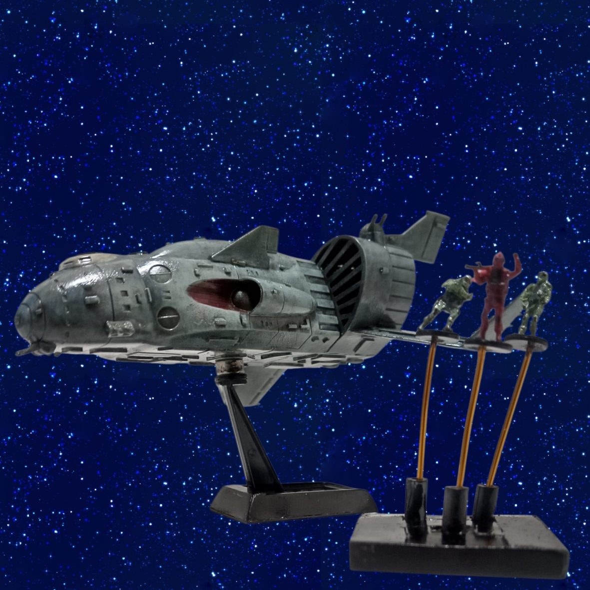 ザンジバルはプラ板でディテール追加、水性ホビーでの筆塗りを行っています。台座にセットできるようにマグネットを仕込んでいるので取外しは出来ます。
