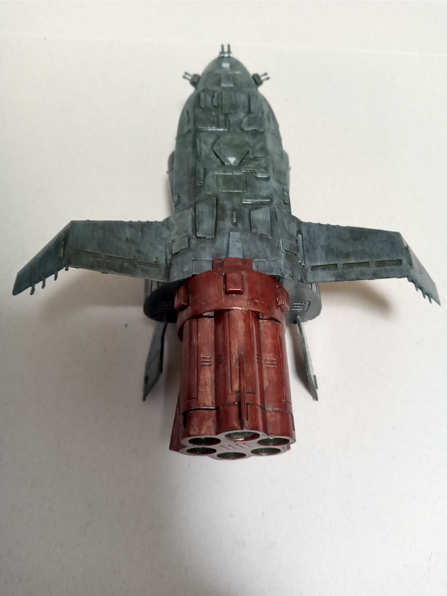 ブースターを取り付けた状態です。本来大気圏突入用らしいのですが、大きなブースターがかっこいいので装着している方が個人的に好きです。