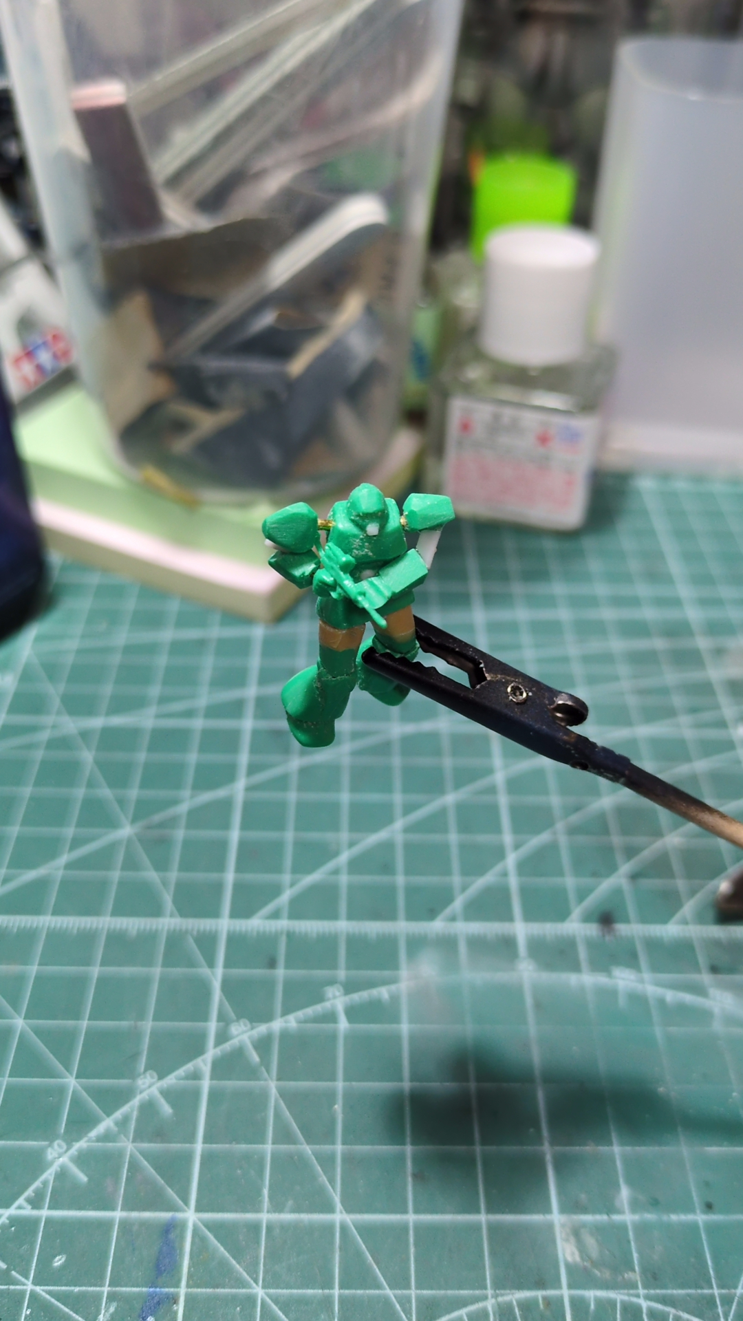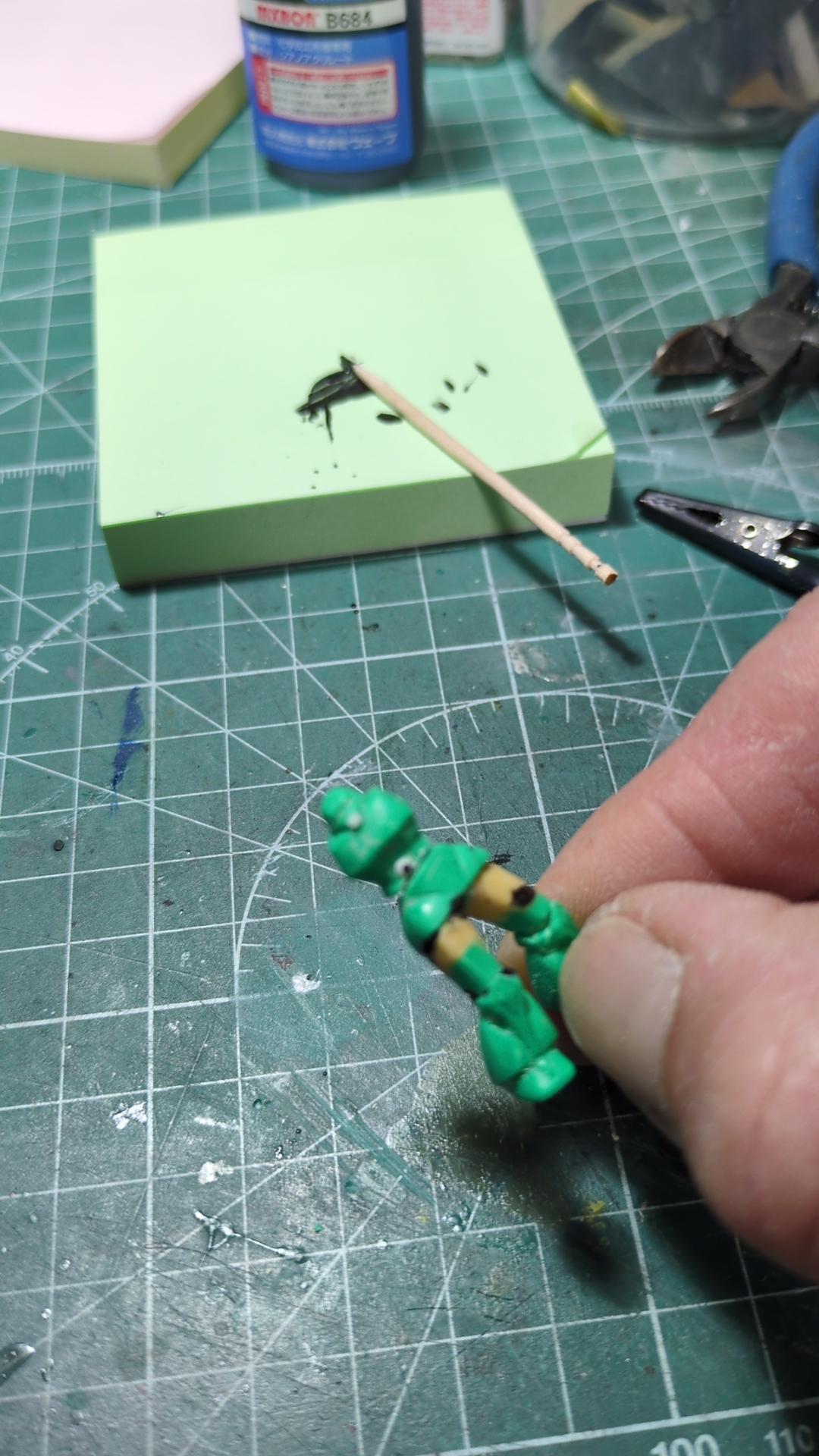 レゴの手みたいですが🤣ライフルに手を添える為に左手の掌も削りました。