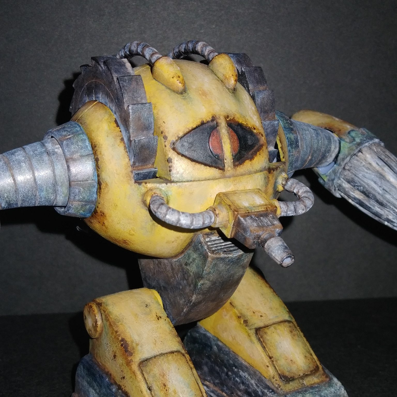 肩の回転ドリル?と腕部です。肩のドリルはより鉄っぽい質感に。腕の付け根は鉛っぽく。全て水性アクリル+ウェザリングカラーで仕上げました。