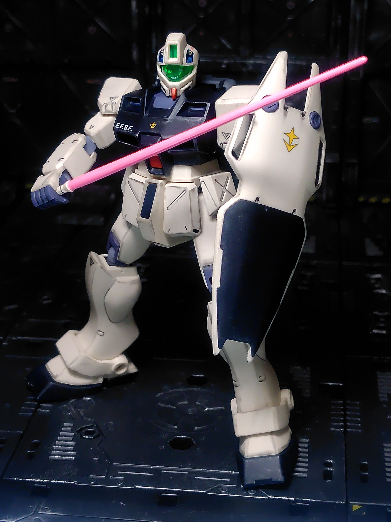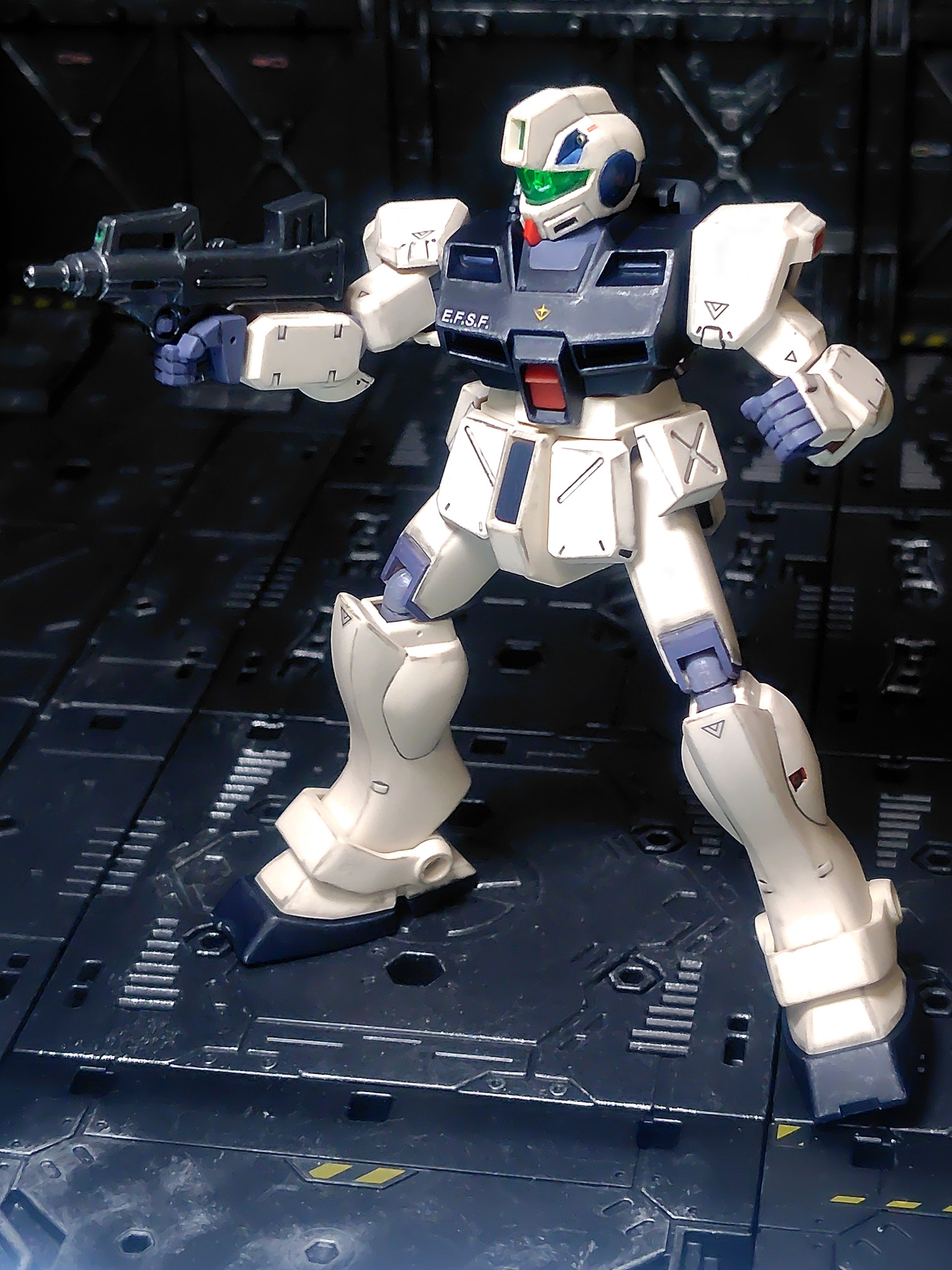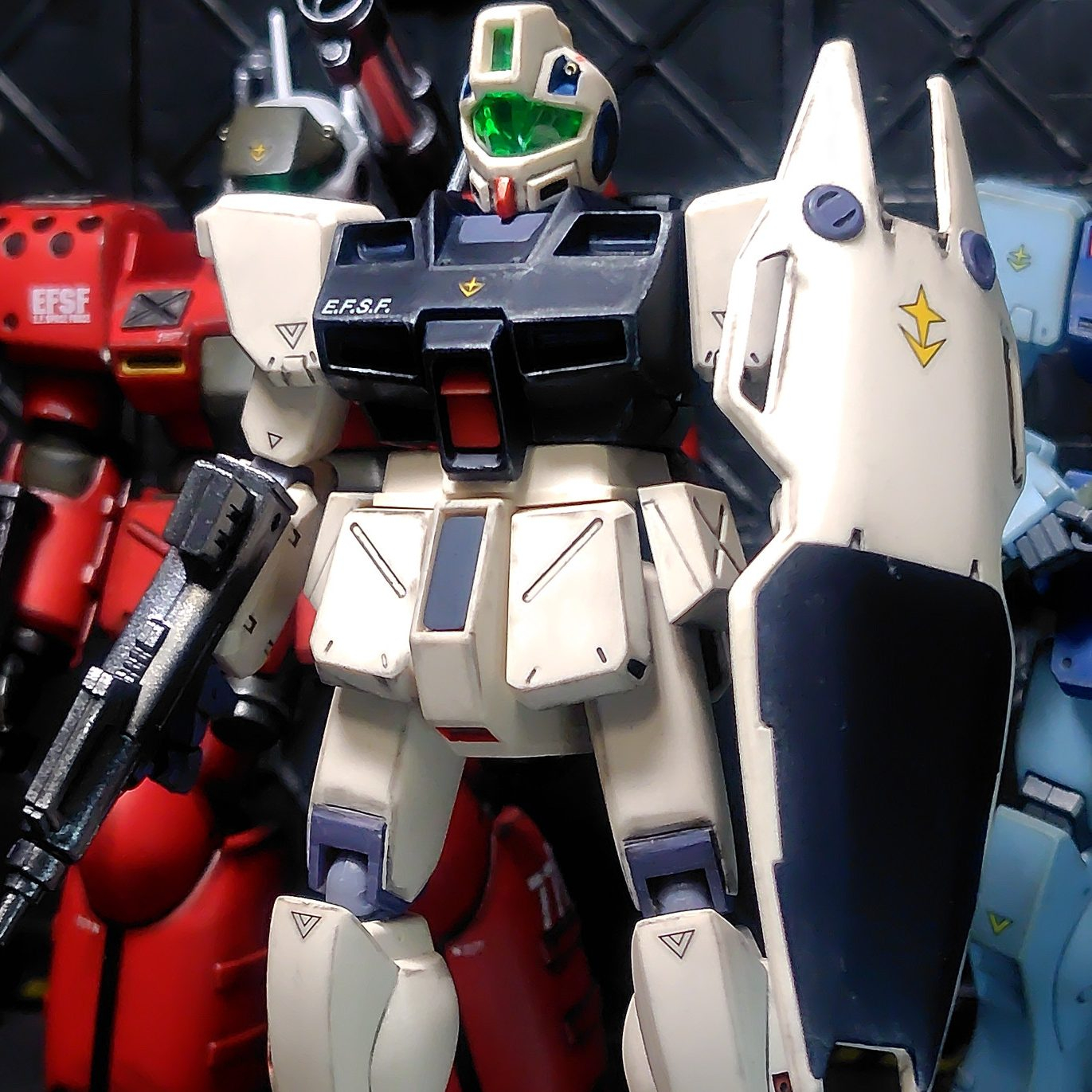 旧キット ジムコマンドのコロニー戦仕様です。ポケ戦の旧キットは出来がいいと評判ですが、実際に初期のHGとも遜色のないスタイルで良い物でした(gundam-kao6)