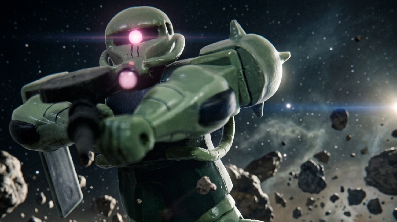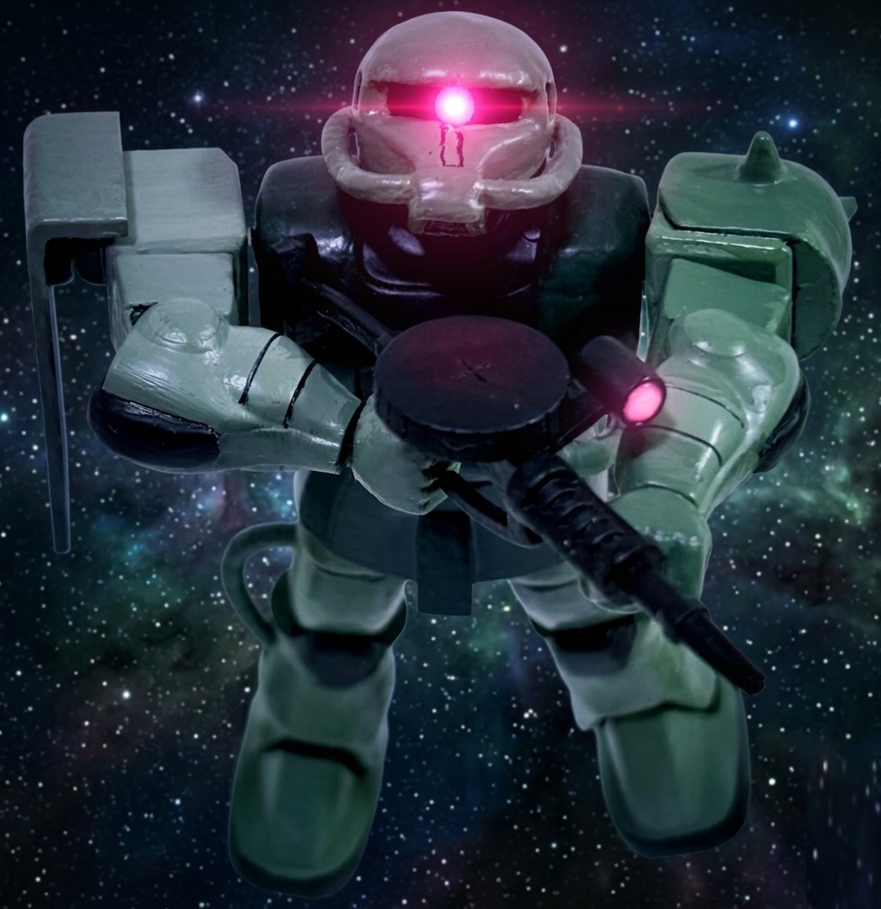こんばんは これは素晴らしいザクⅡですね モノアイと射線が同調しているのが完璧です ありがとうございます
