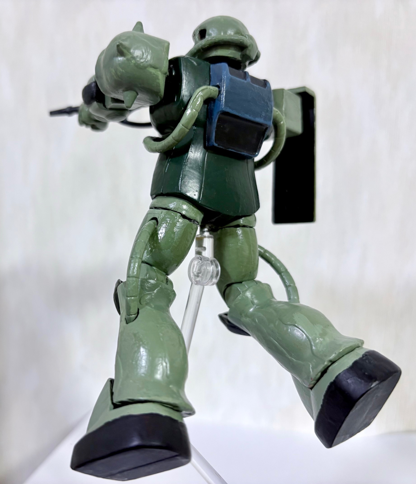 コメントありがとうございます。ザクの武器といえばザクマシンガンなので、構えるところはカッコよくしてみました(gandam-hand2)