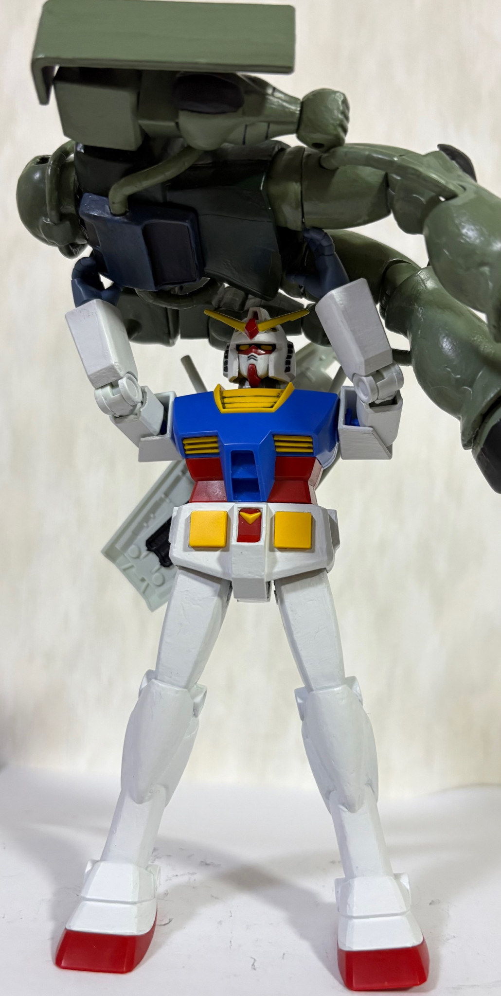 なお上記のやり方を応用してリバイバル版ガンダムにザクを持たせると、TV版ドアンザクのラストシーンを再現できる(gundam-kao3)