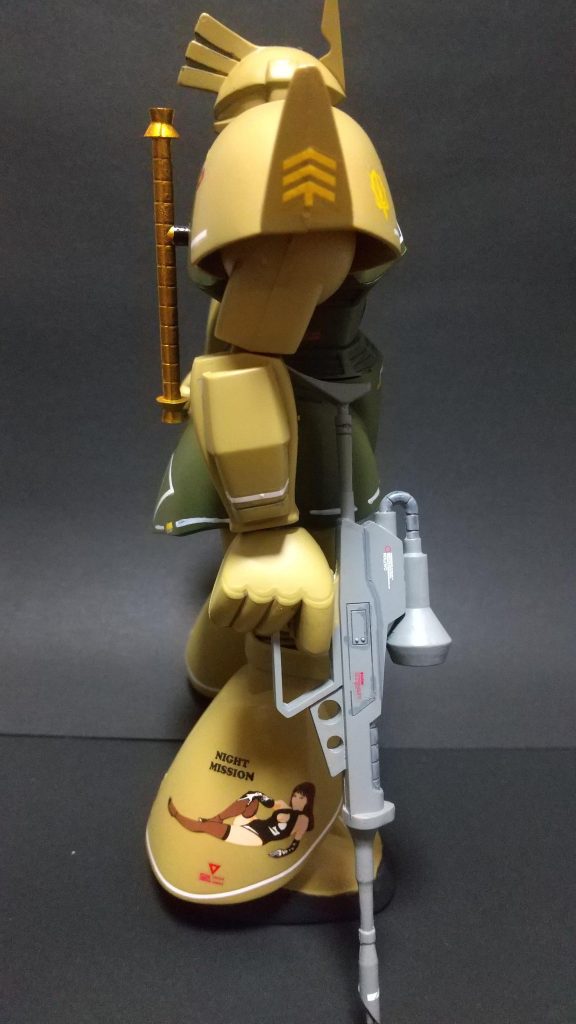 ノーズアート風のおねえさんも付いているし、カラーもMS-14GD ゲルググGに近いし、キャリフォルニアベース所属って感じですね。